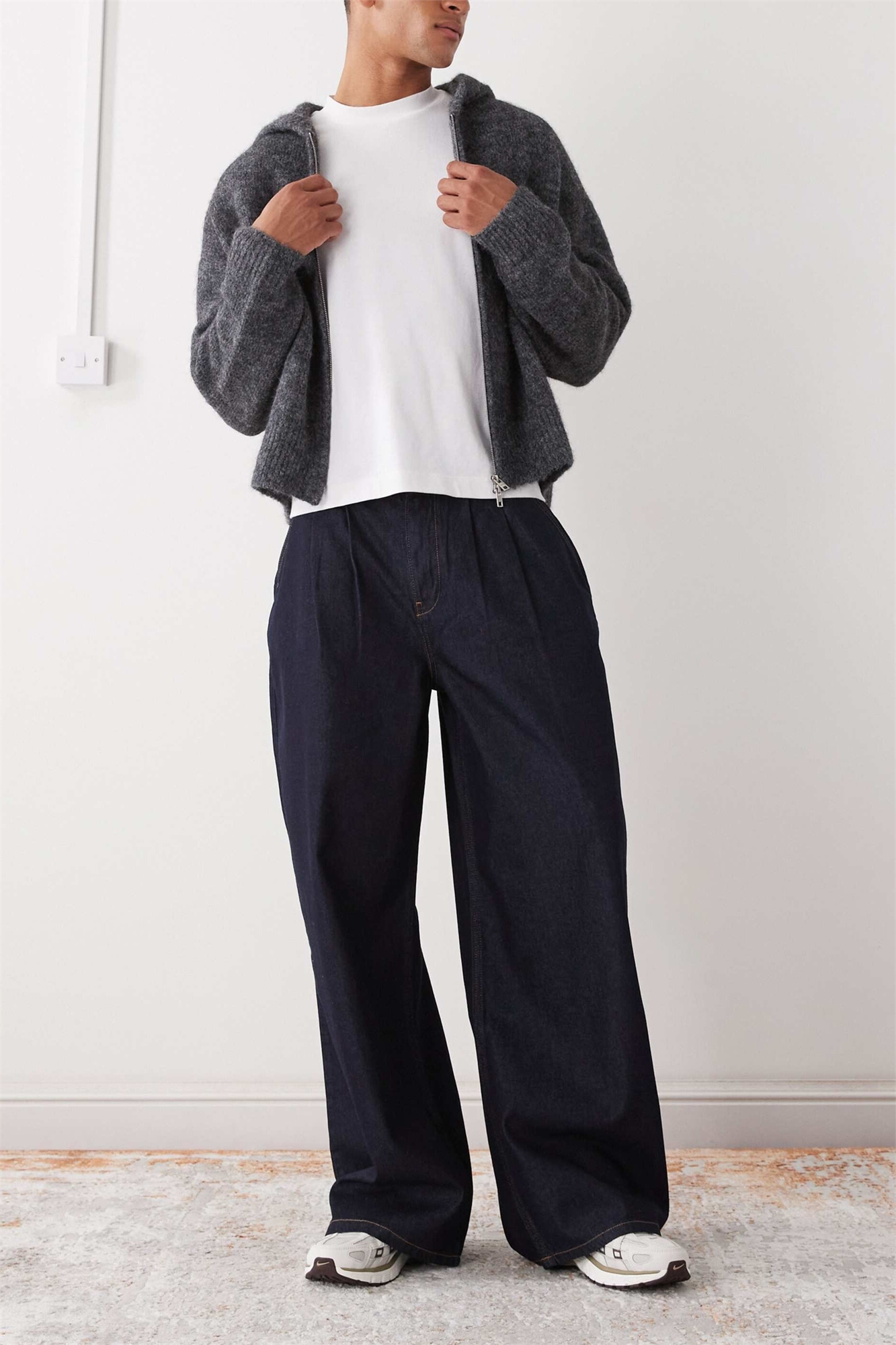 Джинсы из пуддл-денима с вытачками спереди