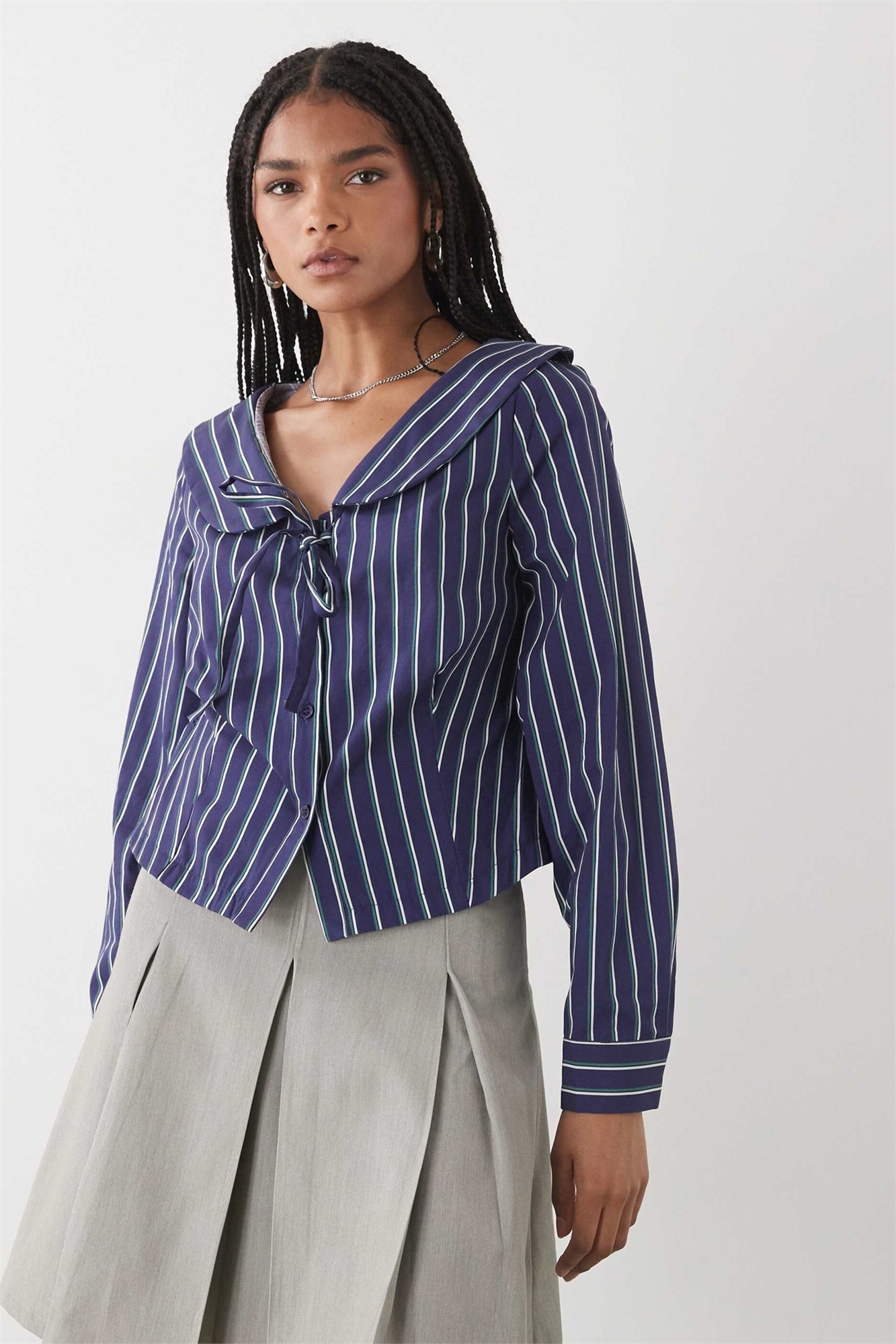 Укороченная рубашка с воротником и завязками спереди
