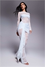 Комбинезон Roxy из прозрачного кружева с высоким воротником, драпировкой на талии и широкими брючинами