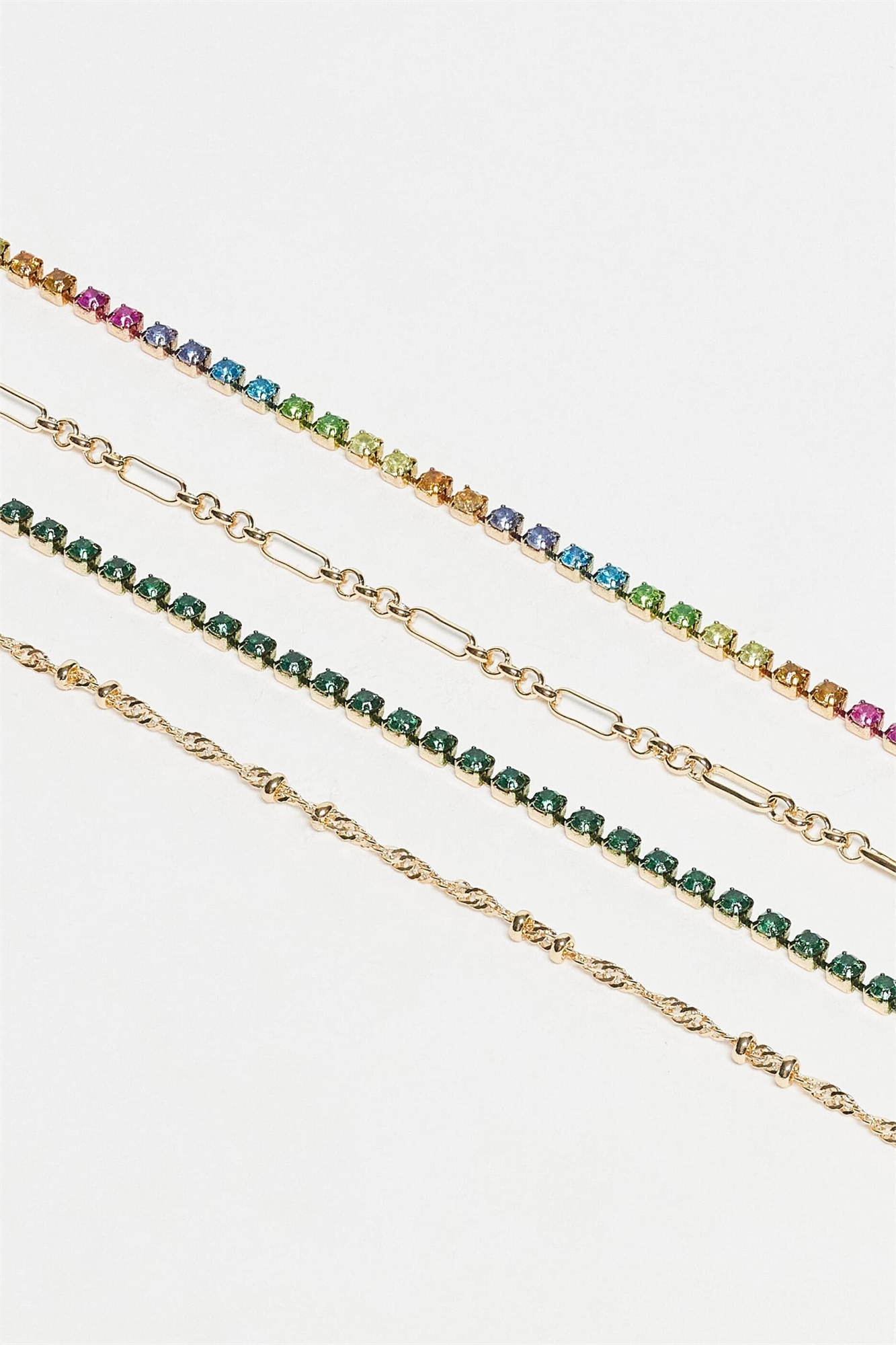 Набор из 4 изящных браслетов с разноцветными блестящими стразами