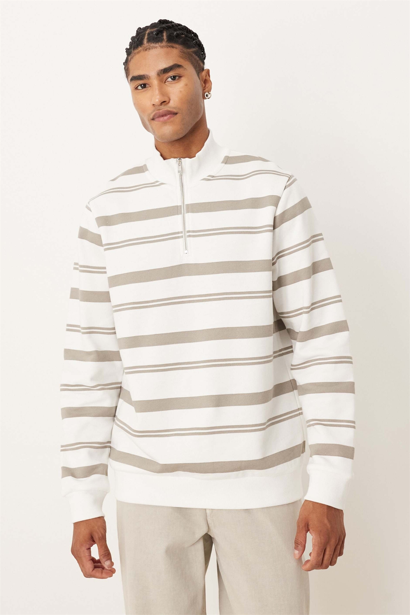 Толстовка с четвертью молнии и полосками