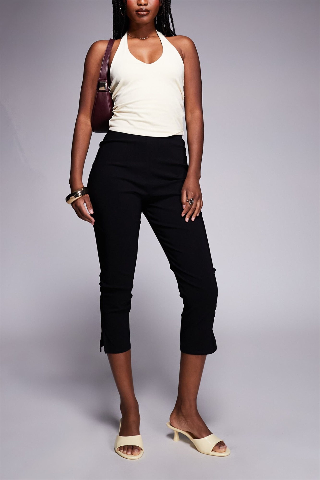 Брюки-капри из бенгалина с удлиненной длиной и разрезом по низу