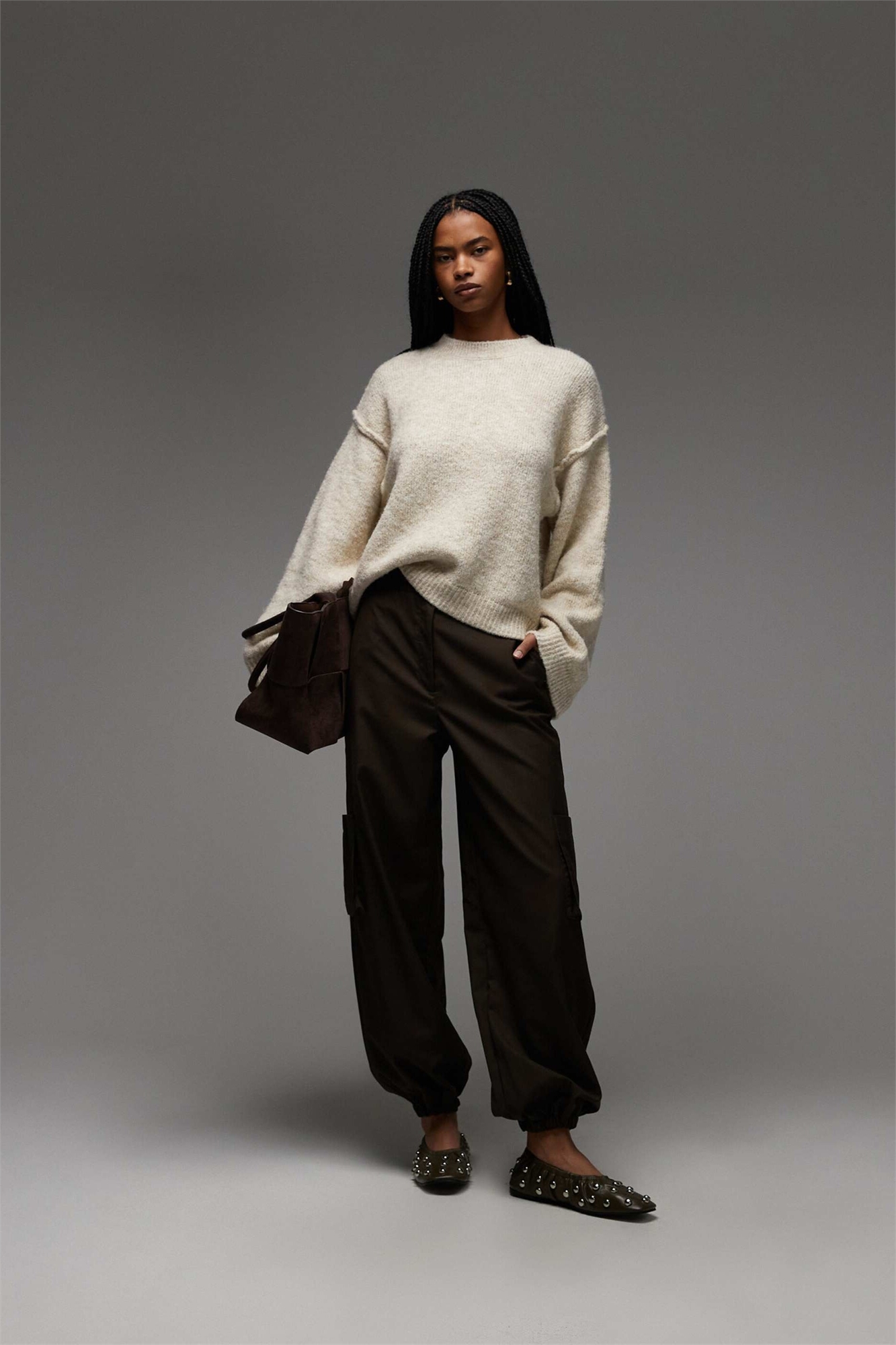 Вязаный свитер с открытыми швами из шерсти