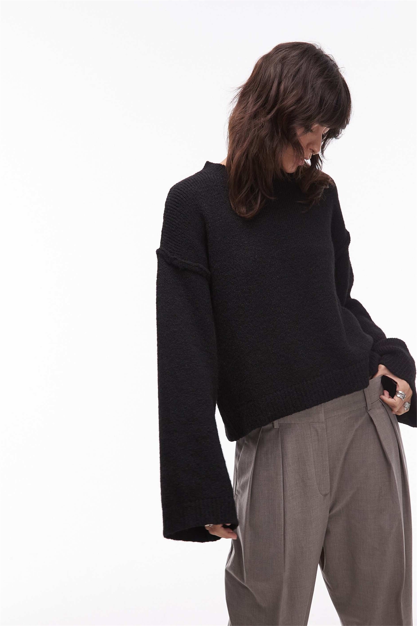 Вязаный свитер с открытыми швами из шерсти