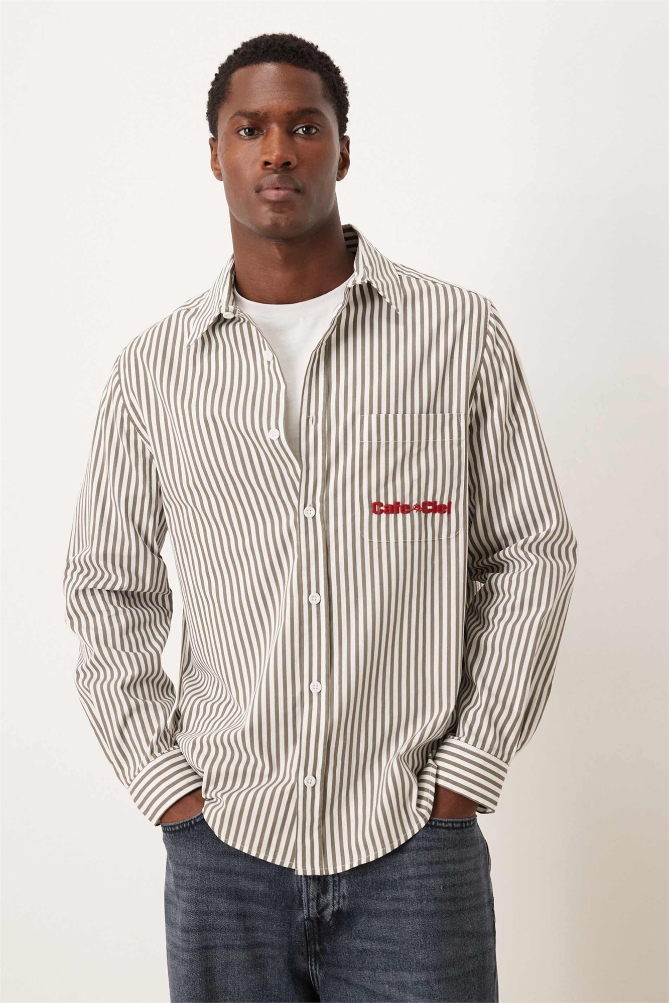 Рубашка свободного кроя из поплина с вышивкой на груди