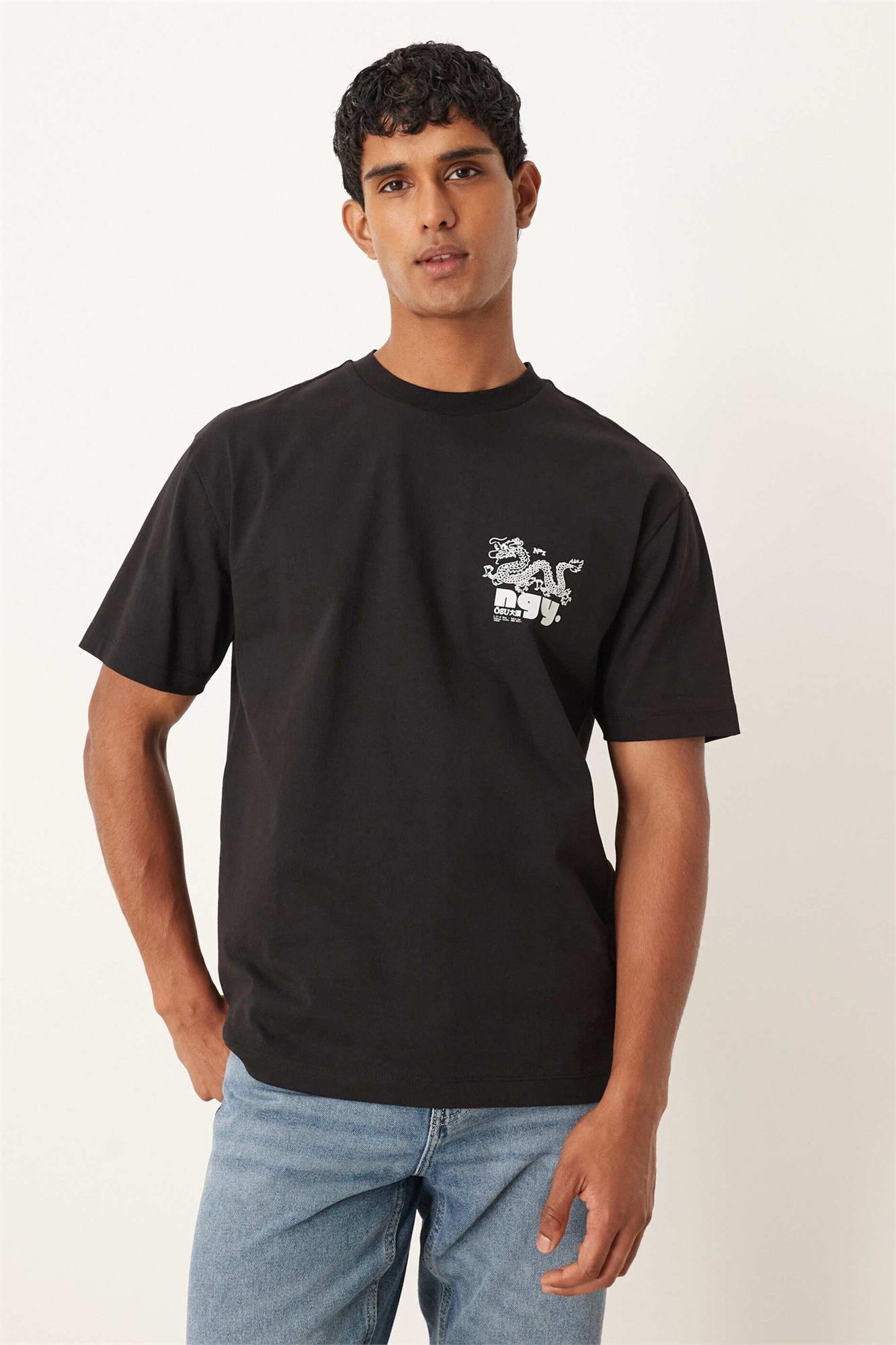 Толстовка свободного кроя из плотной ткани с принтом в виде дракона