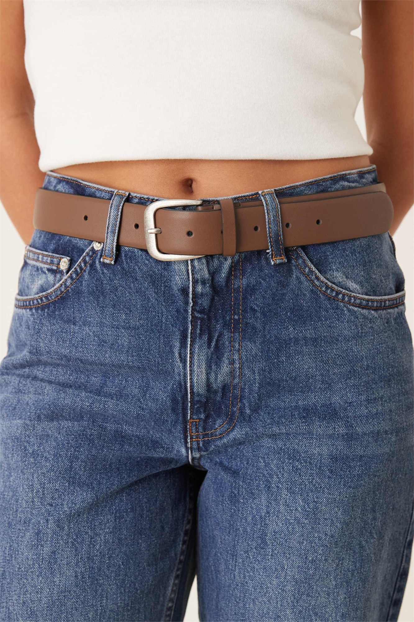 Джинсы с зауженной талией и широкими бедрами, классический джинсовый ремень
