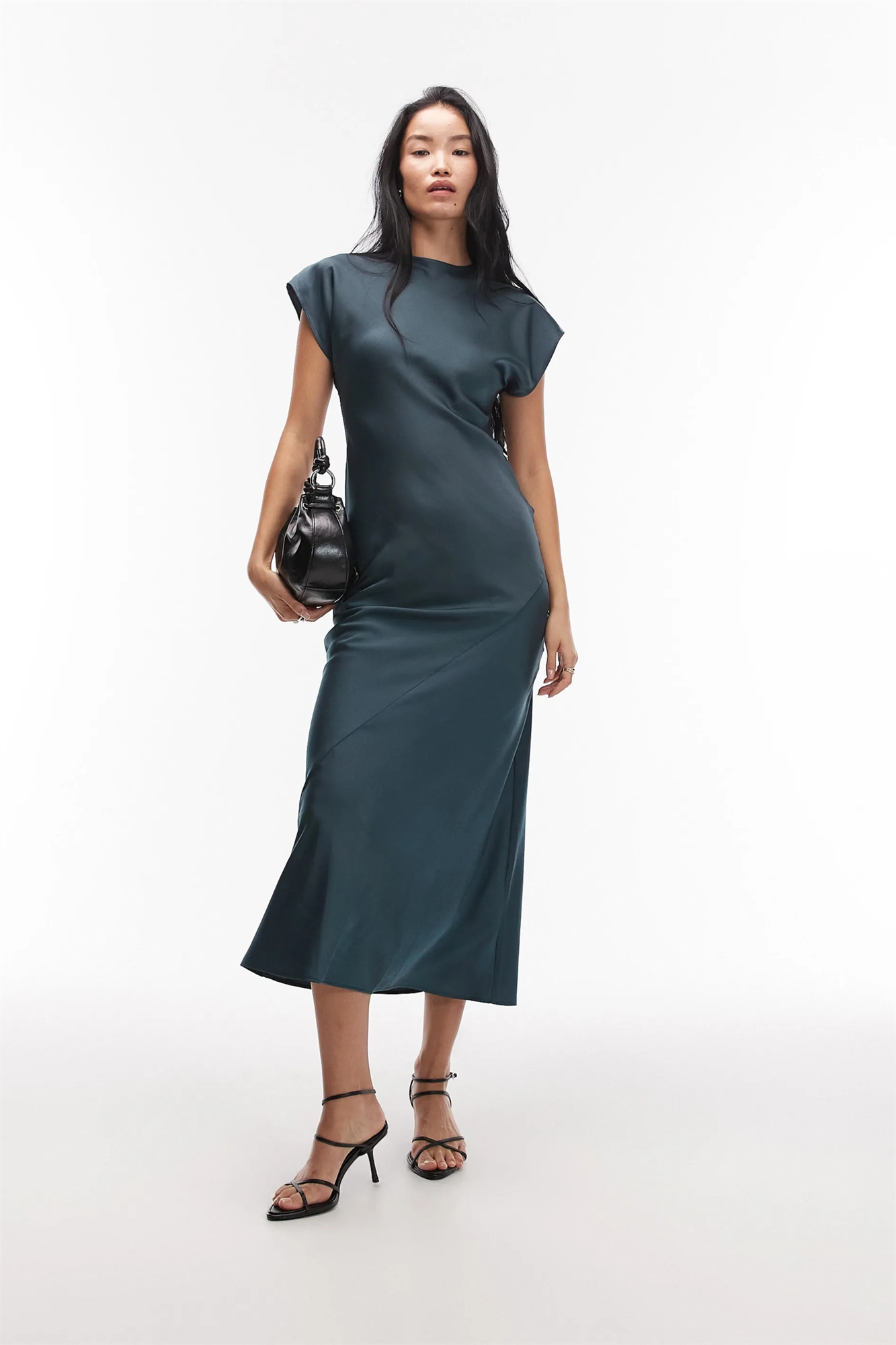 Макси-платье-комбинация из атласа с короткими рукавами и декоративными швами