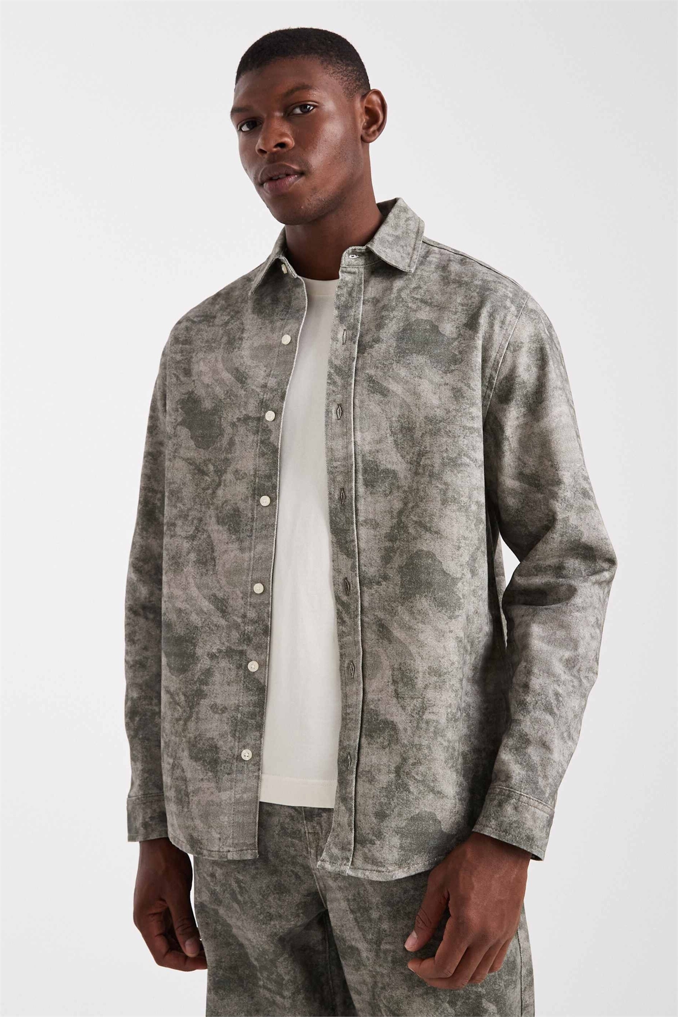 Неэластичный деним: камуфляжная стирка Основной материал: 100% хлопок.