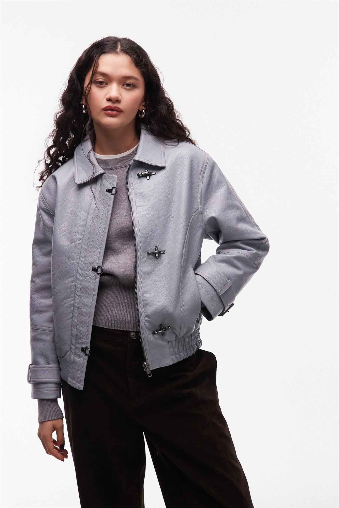 Куртка из искусственной кожи с металлическими элементами на воротнике