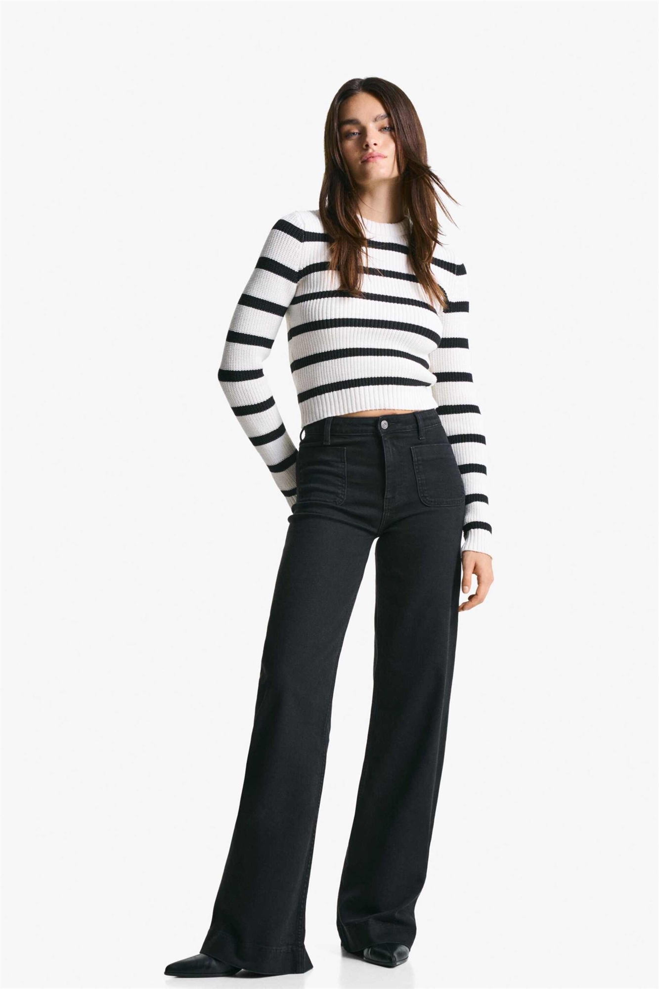 Джинсы без швов с широкими брючинами и карманами