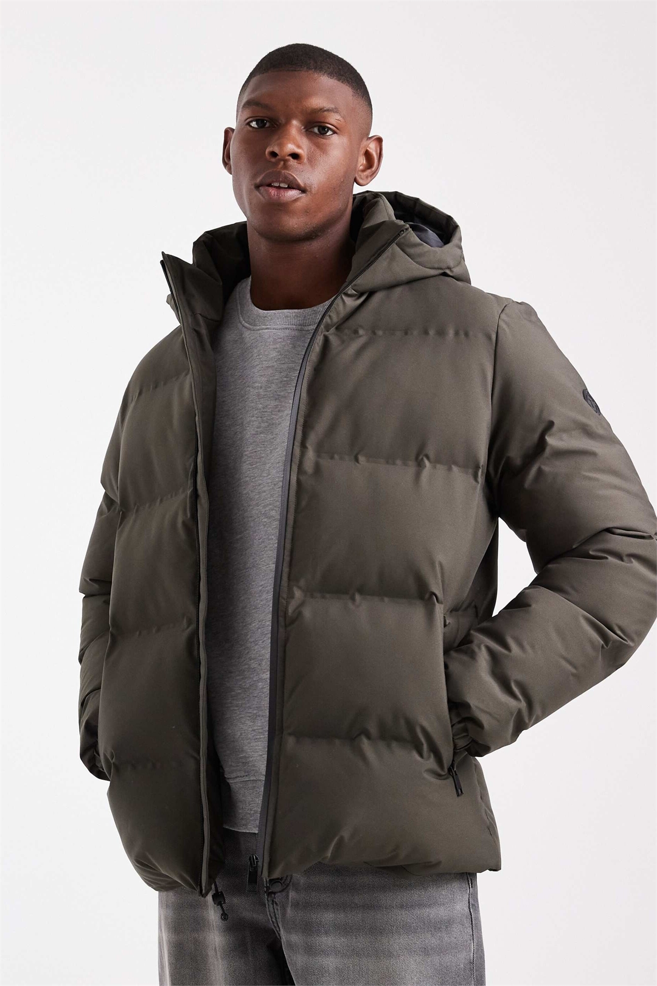 Пуховик с капюшоном цвета хаки