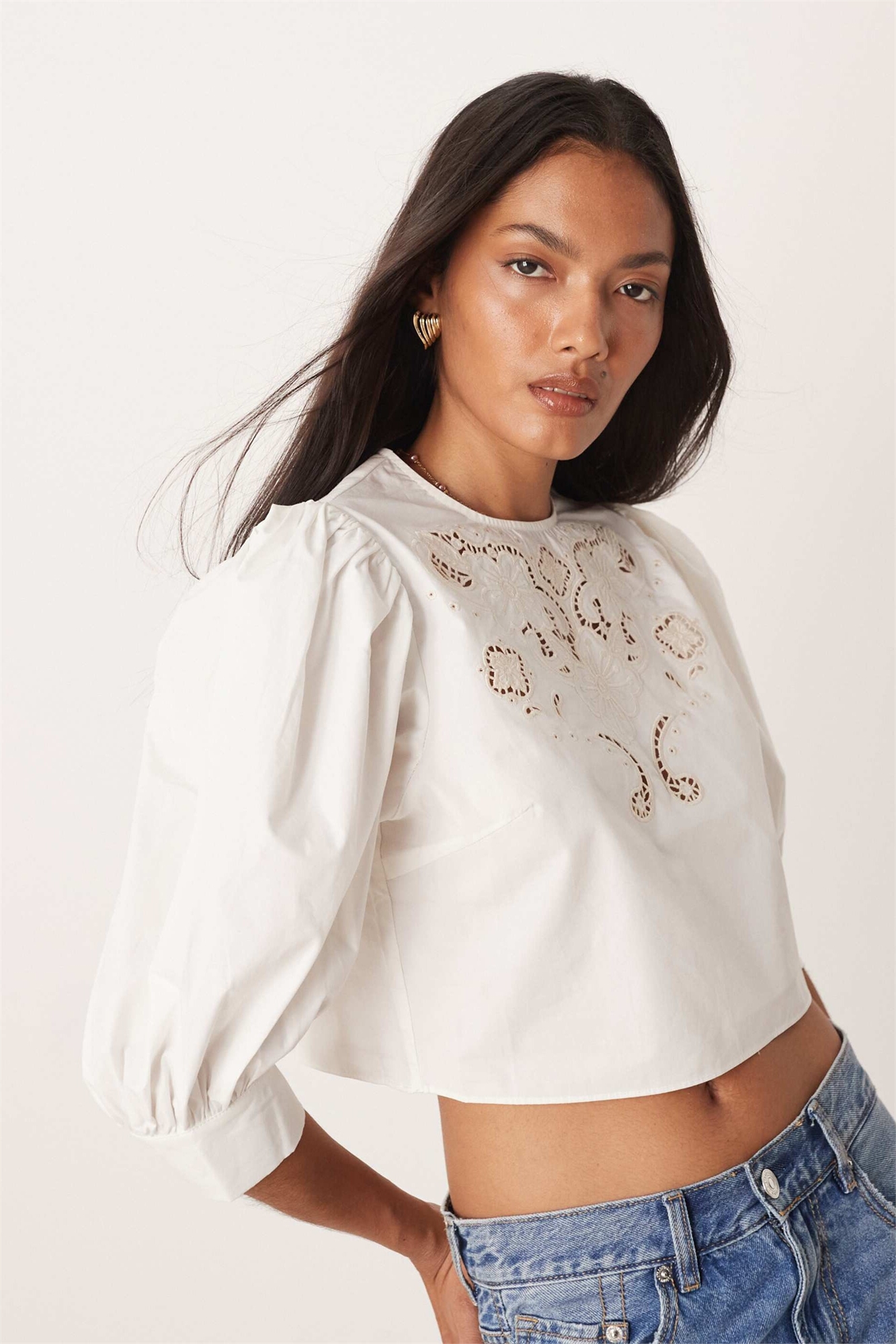 Блузка прямого кроя с вышиванием и рукавами-мешками