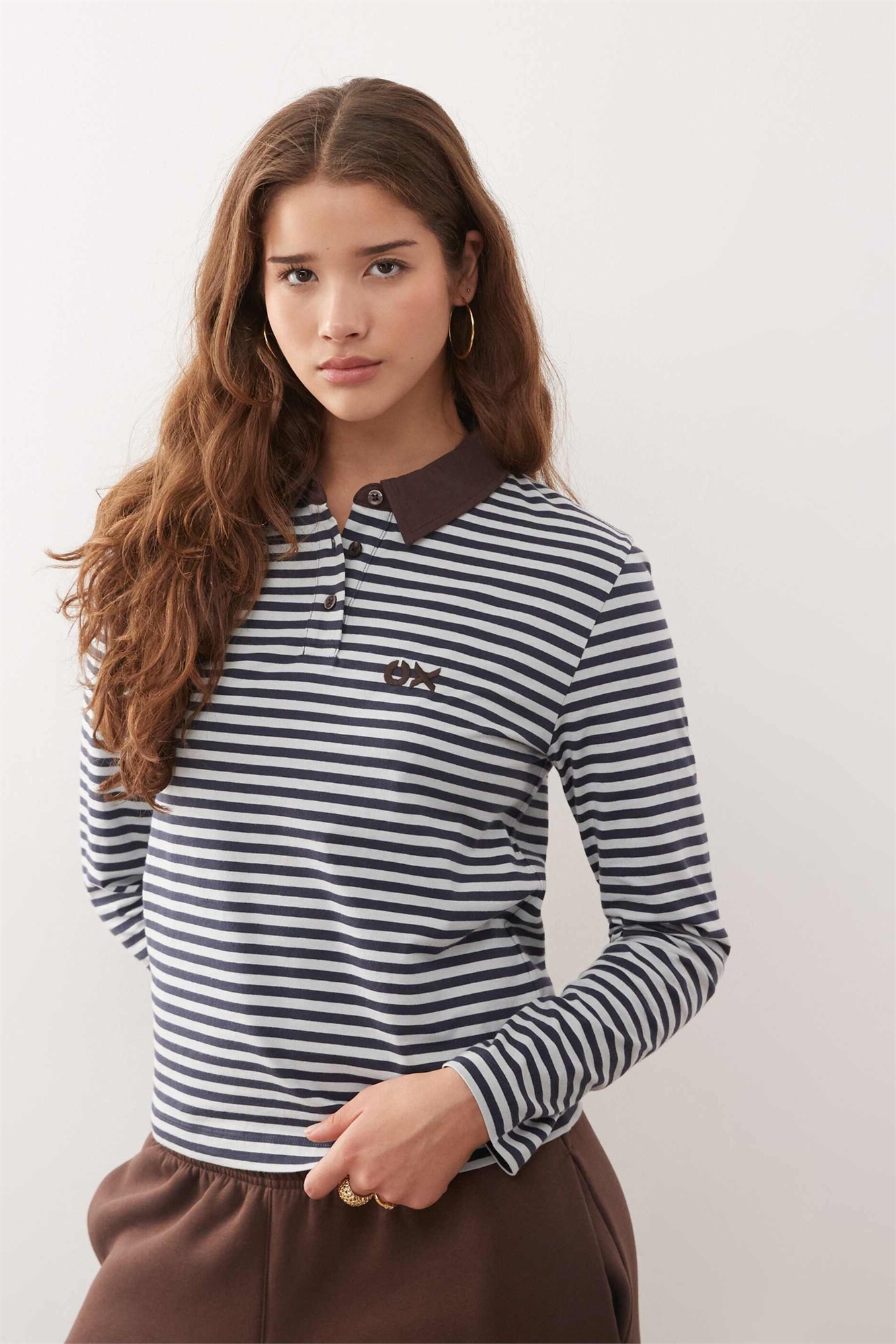 Поло с полосками и длинными рукавами