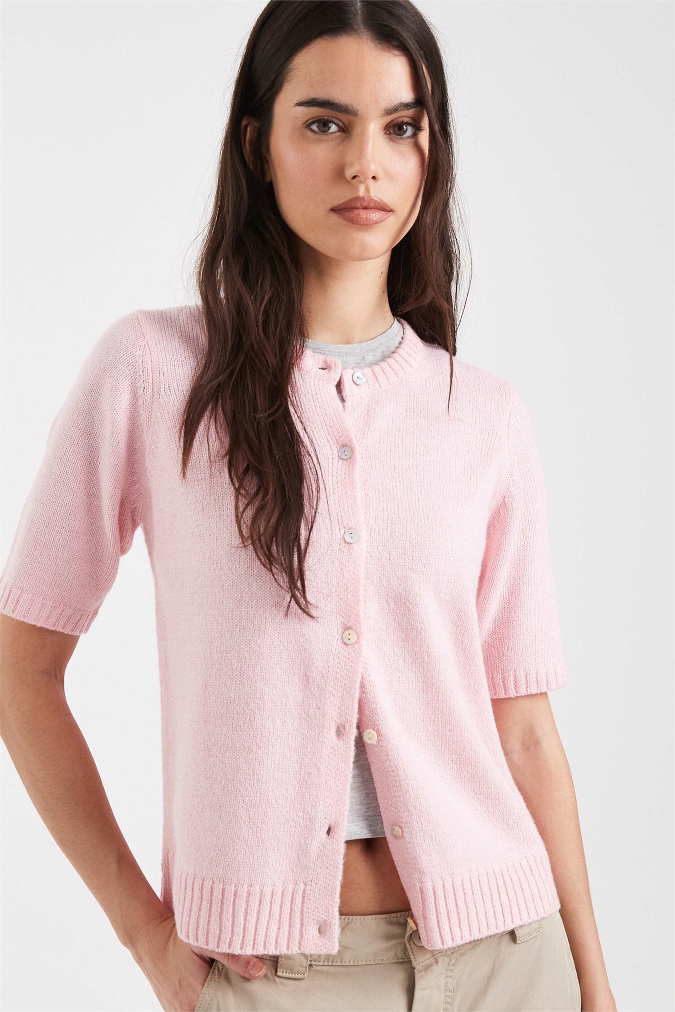 Кардиган с коротким рукавом и круглым вырезом