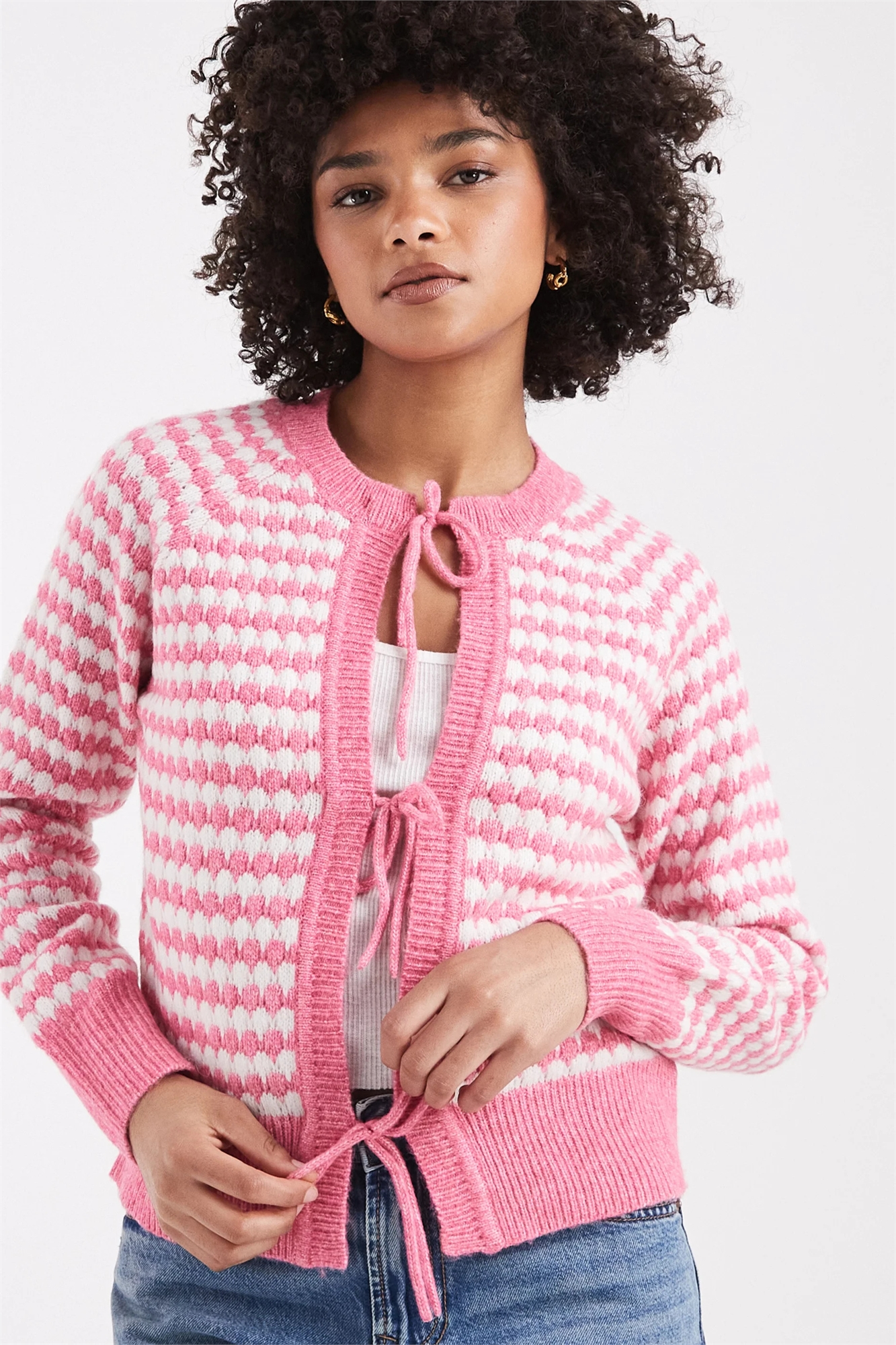 Вязаный кардиган с завязками спереди