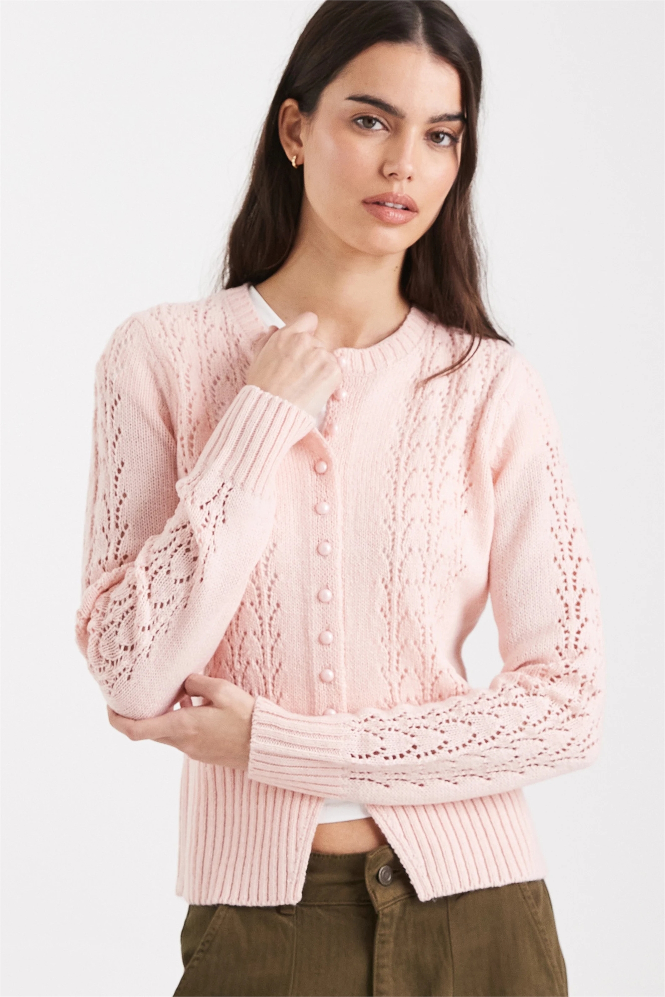 Кардиган с круглым вырезом и узором «пойнтелл»