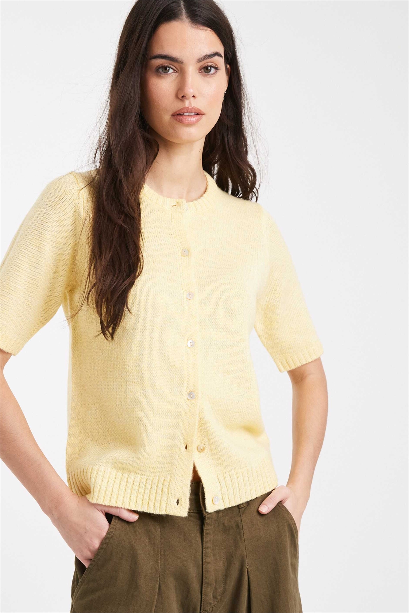 Кардиган с коротким рукавом и круглым вырезом