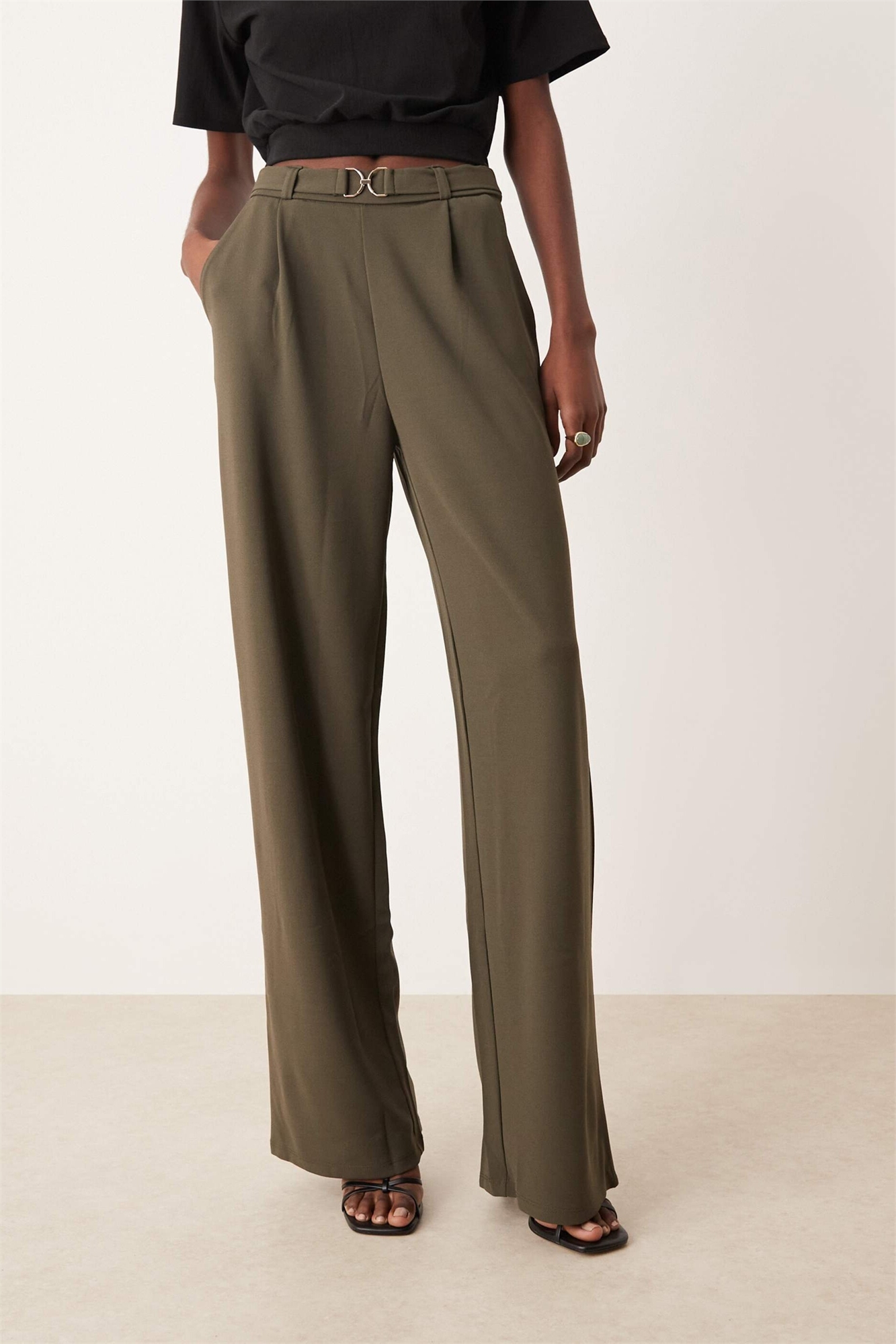 Брюки с широкими брючинами и акцентом на поясе