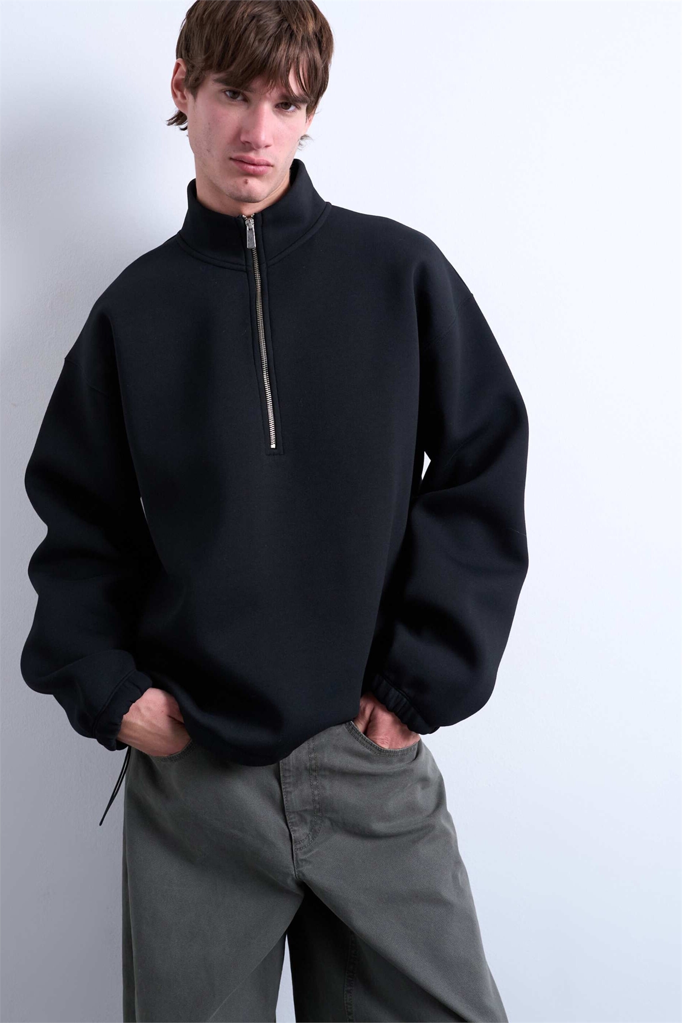 Пуловер с полузастежкой-молнией и воротником-воронкой из ткани типа «скаба»