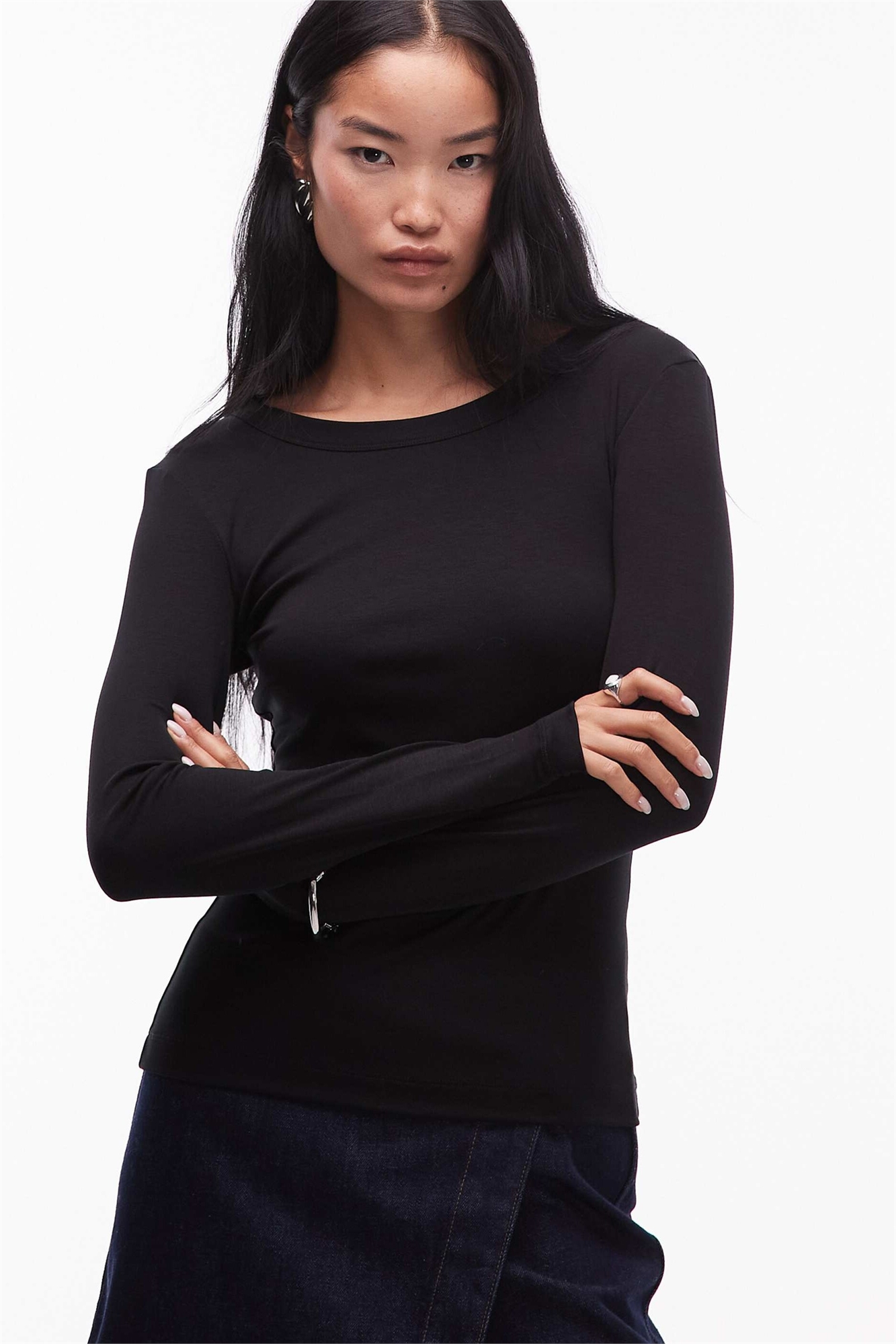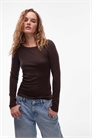 Толстовка с длинными рукавами из трикотажа с ребристой отделкой и лодочным вырезом