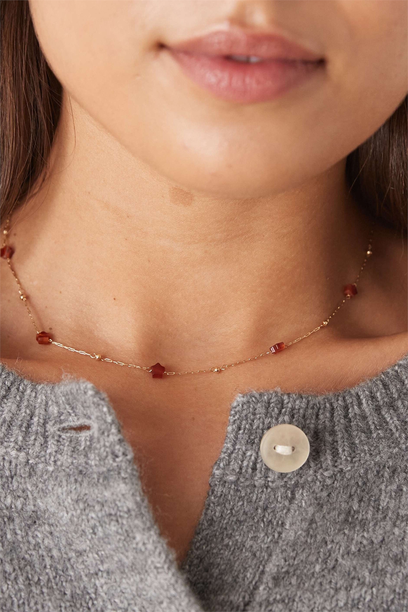 Изящное колье на цепочке с полудрагоценными камнями в форме звёздочек