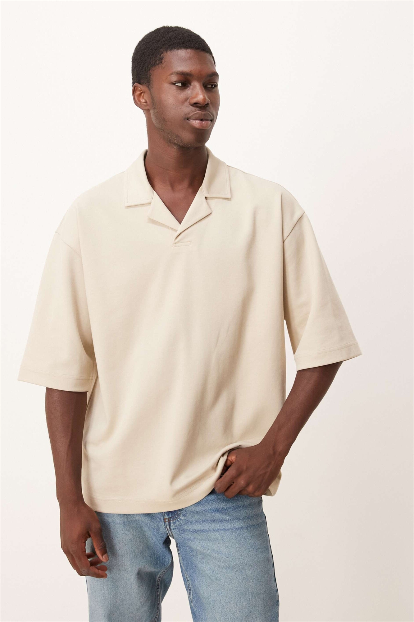 Полурукавная рубашка-поло с отложным воротником из плотной ткани большого размера