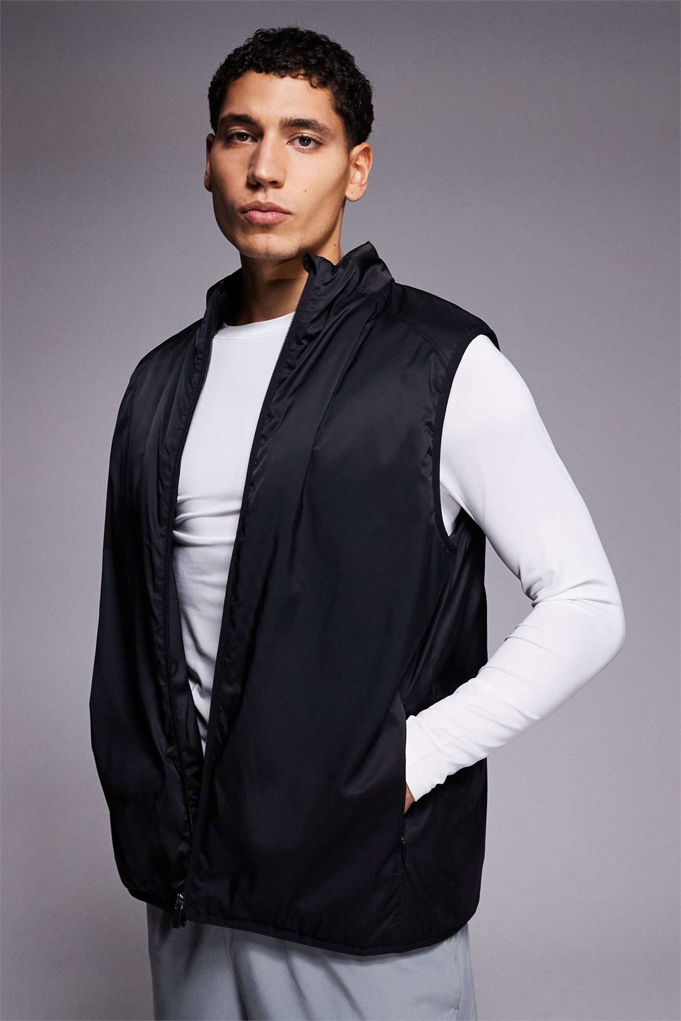 Утепленный беговой жилет с карманами на молнии и светоотражающими элементами