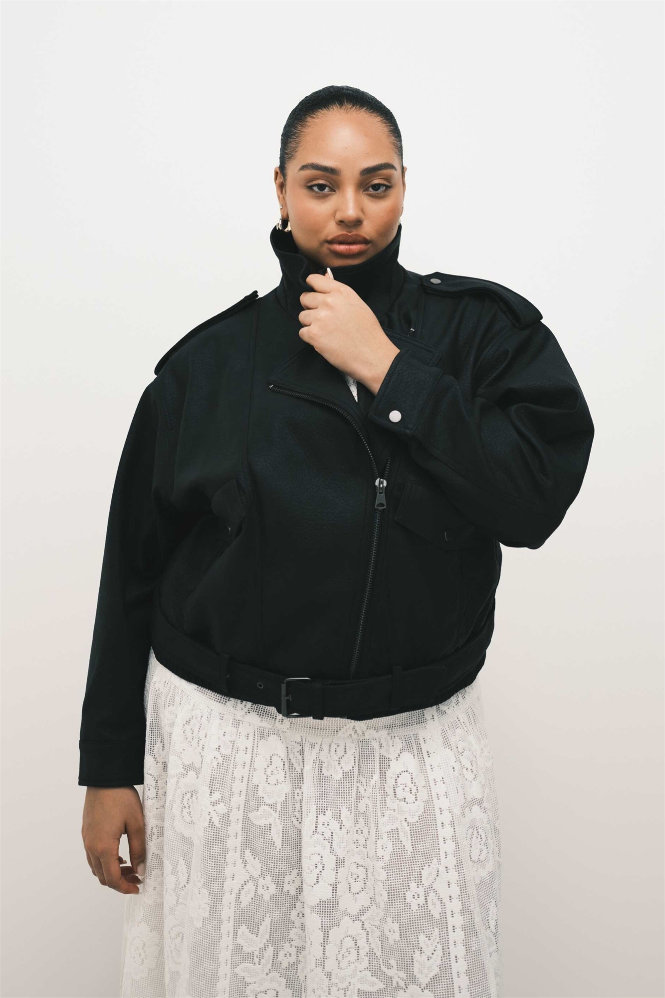 ASOS DESIGN Curve: кожаная куртка-косуха свободного кроя