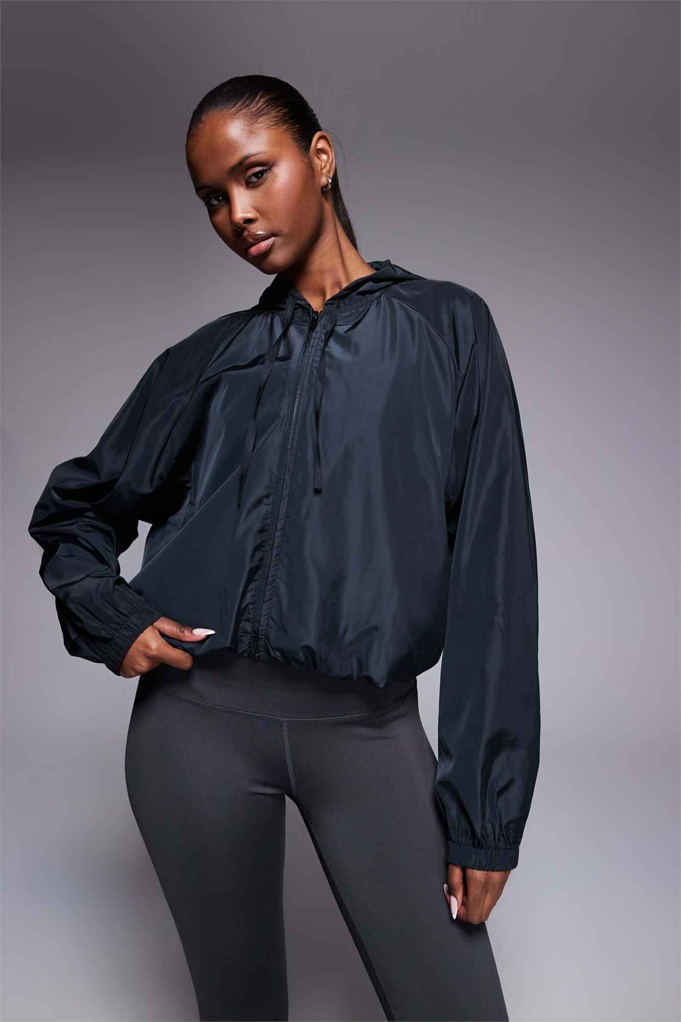 Водоотталкивающая куртка-блузон для бега с капюшоном и карманами на молнии