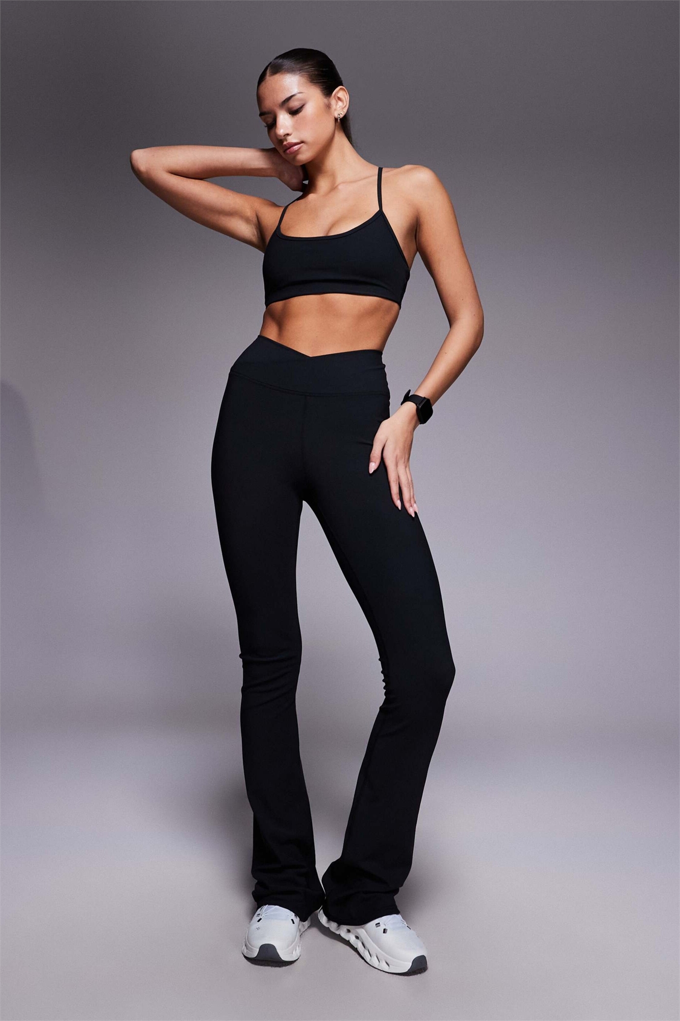 Леггинсы для йоги с микроребристой резинкой на талии и зауженными штанинами