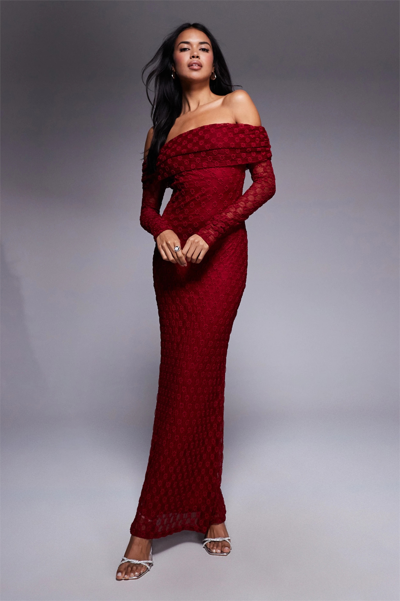 Макси-платье с длинными рукавами и воланами от Adoni