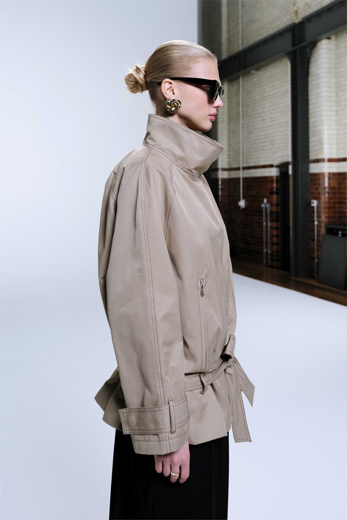 Тренч средней длины с завязками на талии