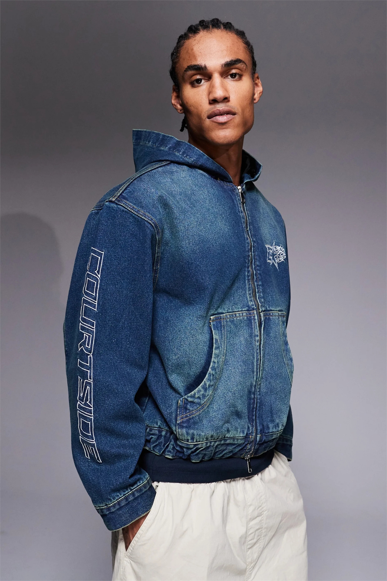 Джинсовая куртка с капюшоном большого размера