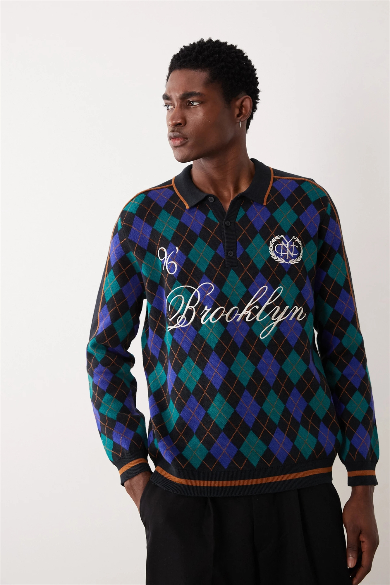 Полурубашка из мягкого трикотажа с аргил-принтом и вышивкой «Brooklyn»