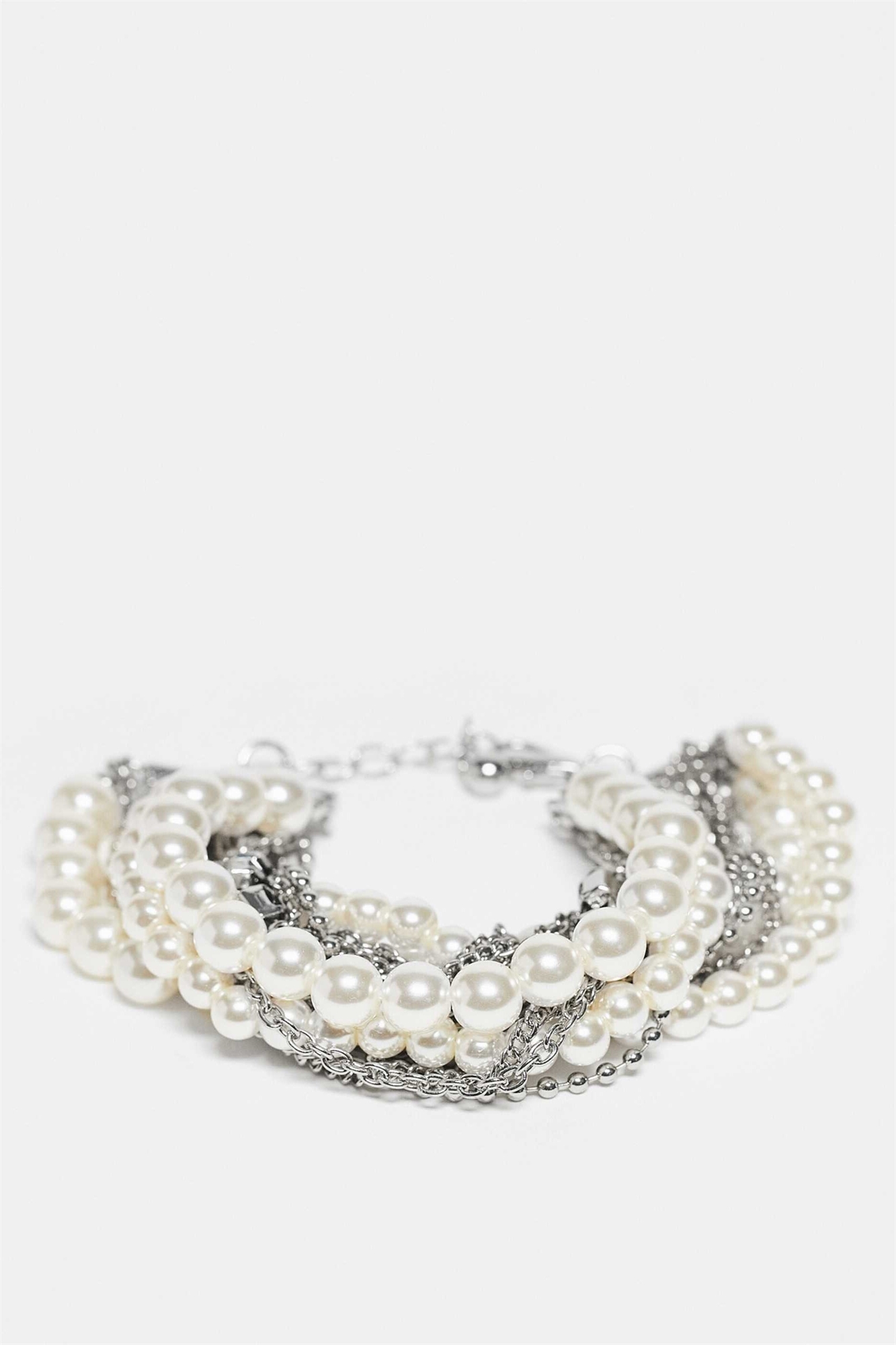 Универсальный браслет из жемчуга и серебра с многослойным дизайном