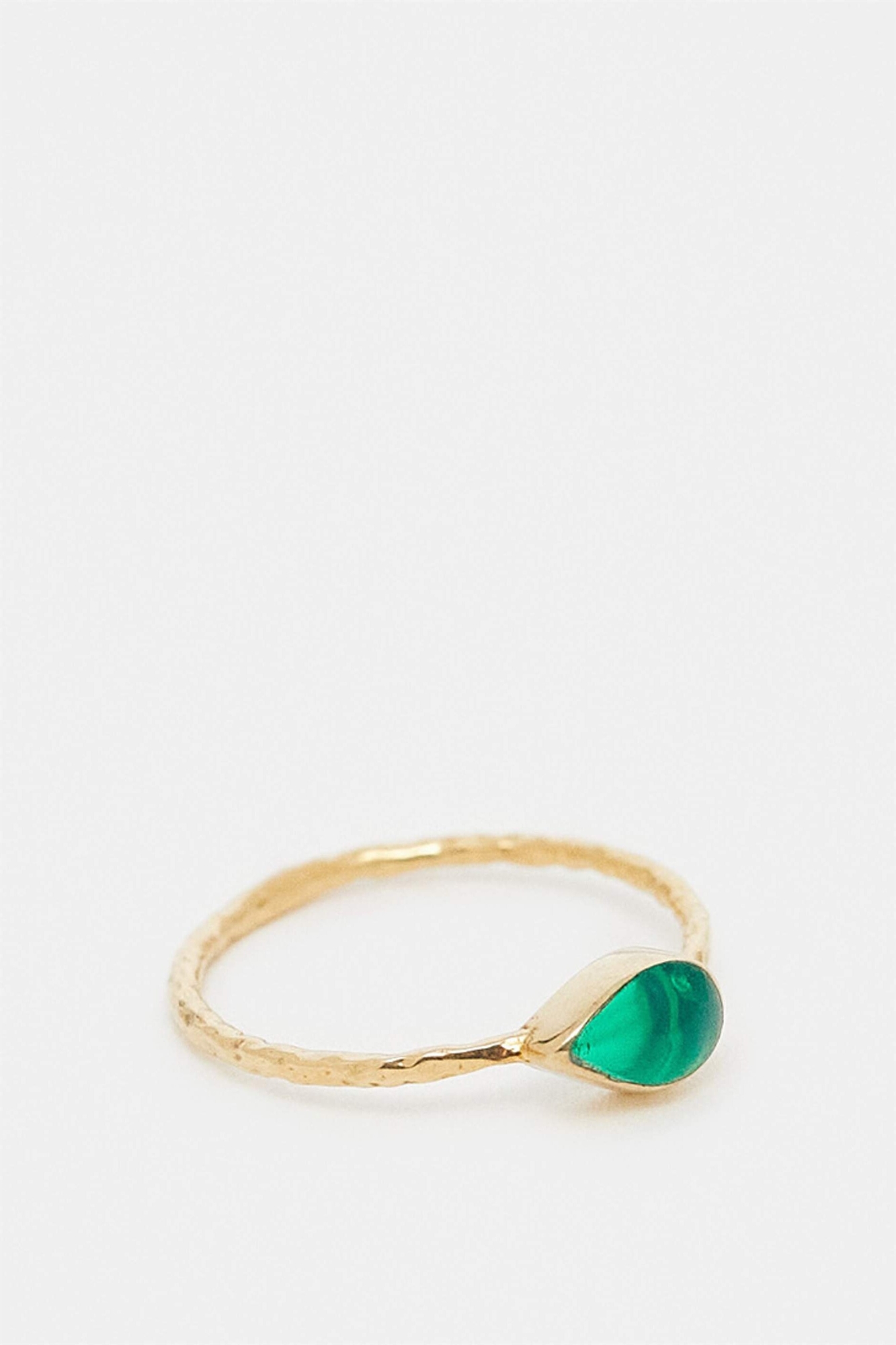 Кольцо с зеленым камнем, покрытое позолотой, с текстурой «под кованое»