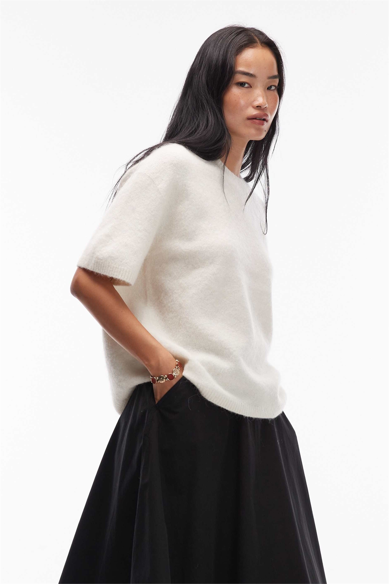 Свитер с короткими рукавами из смеси альпаки и шерсти
