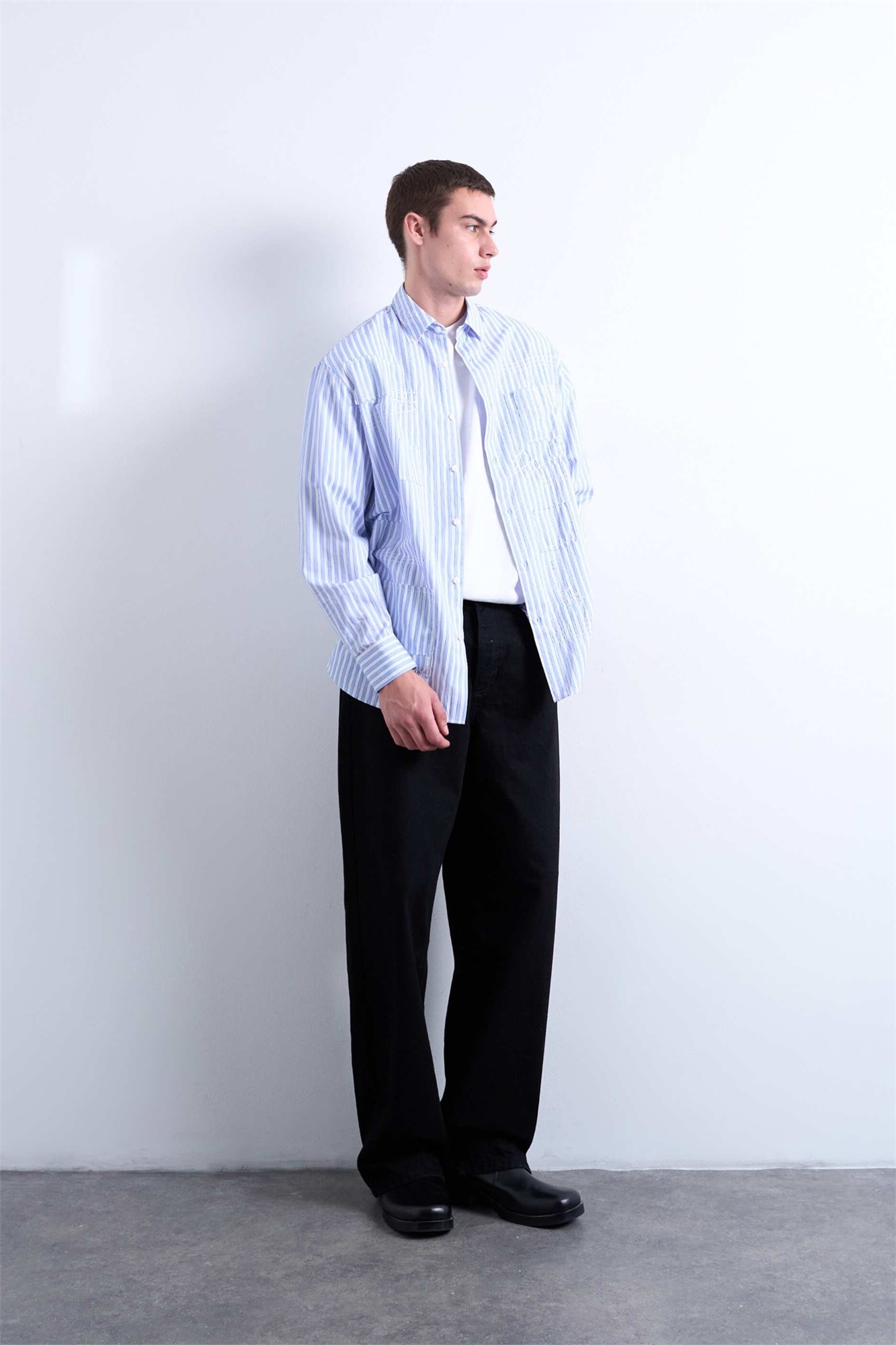 Рубашка свободного кроя в полоску с эффектом потертости по всей поверхности