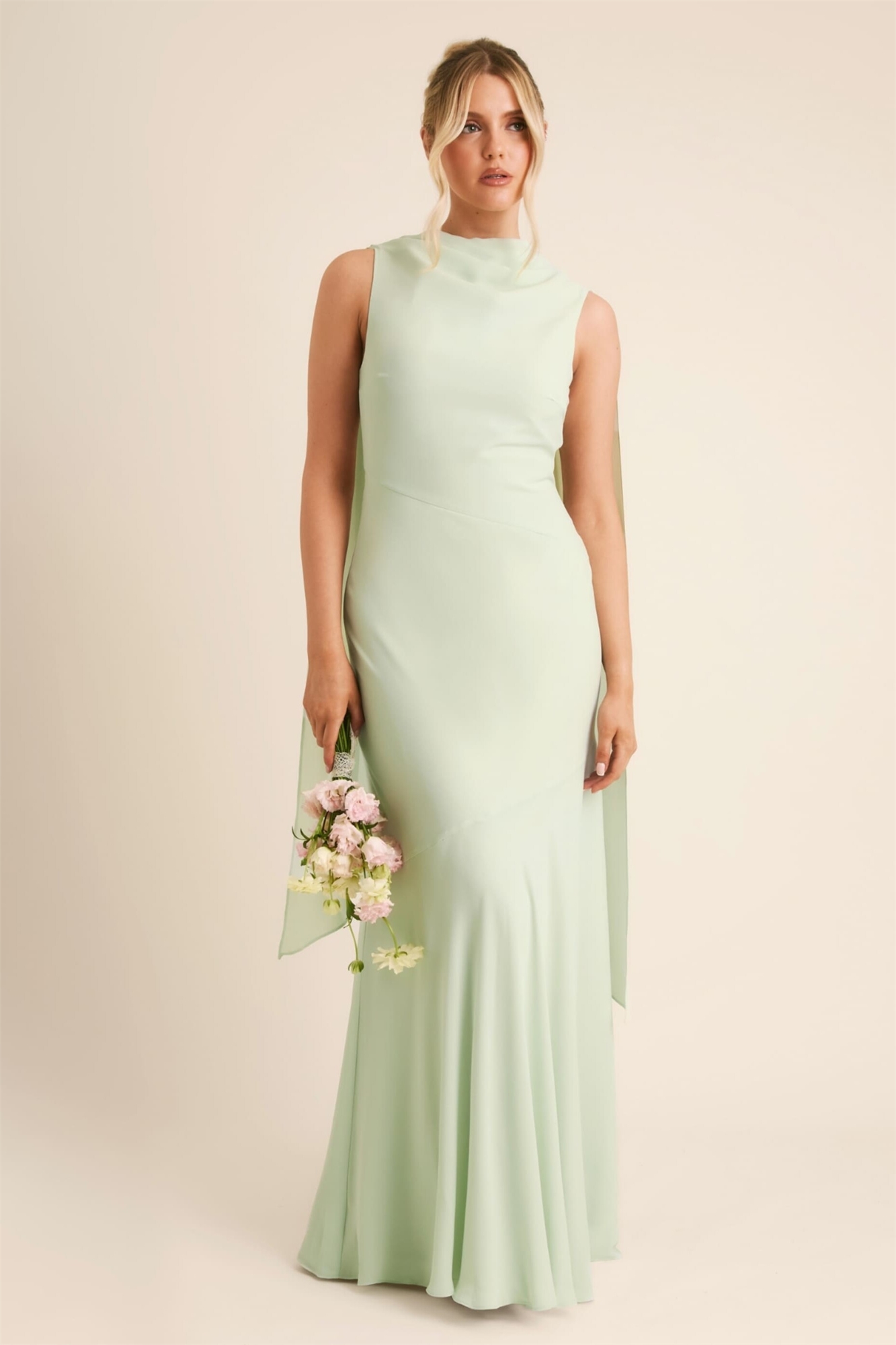 Макси-платье из крепа с высоким воротником-капюшоном для подружки невесты