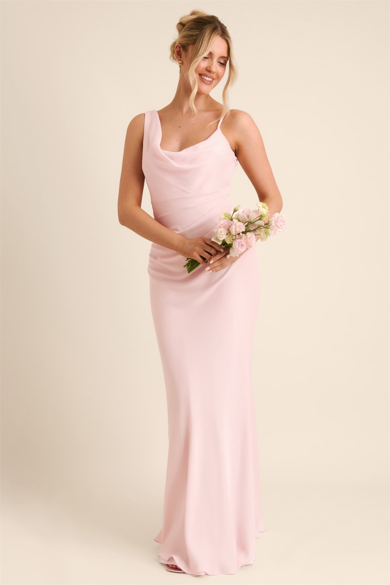 Макси-платье для подружки невесты из крепа с асимметричным воротником-капюшоном