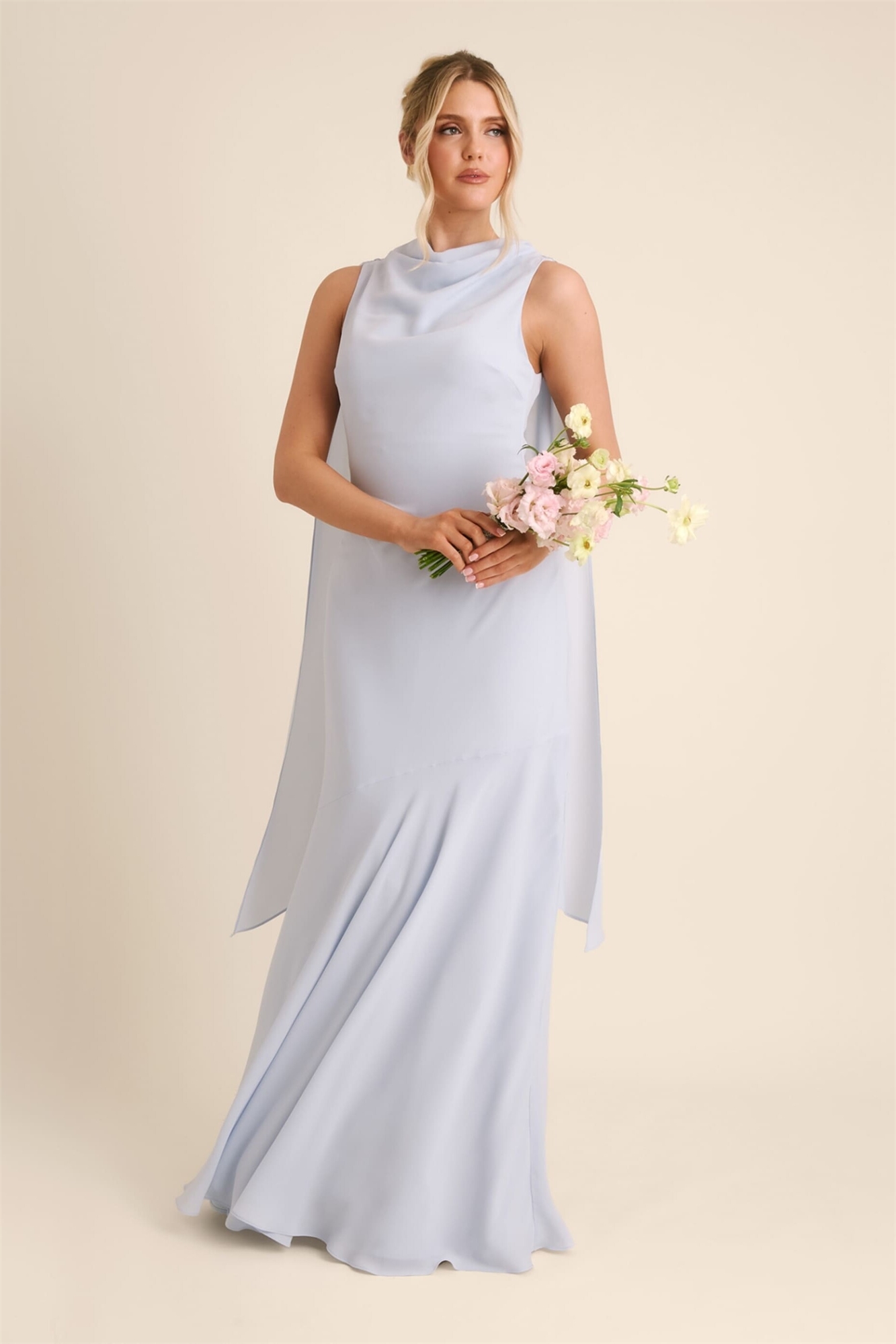 Макси-платье из крепа с высоким воротником-капюшоном для подружки невесты