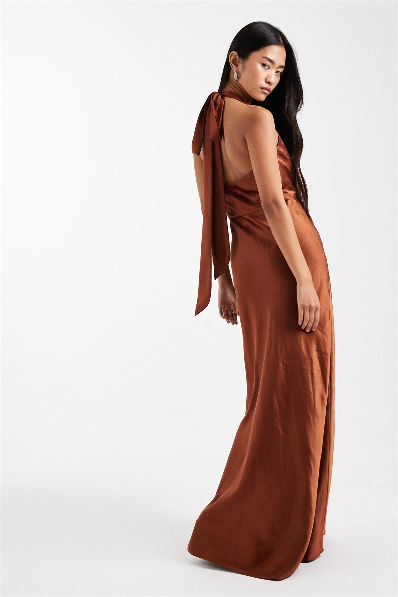 Атласное макси-платье с асимметричным вырезом для подружки невесты