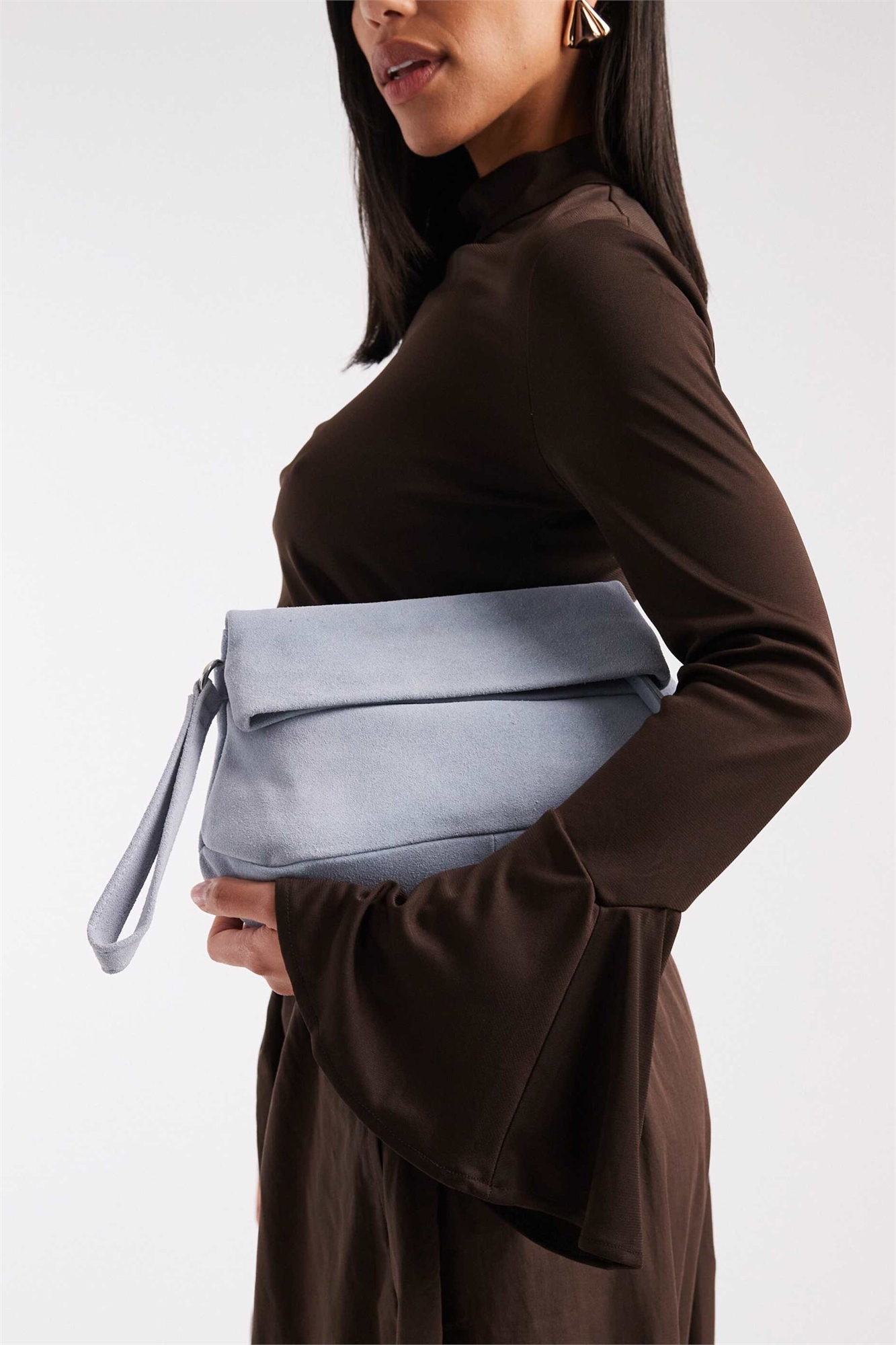 Сумочка-клатч из замши с загнутыми углами и съемным ремнем через плечо
