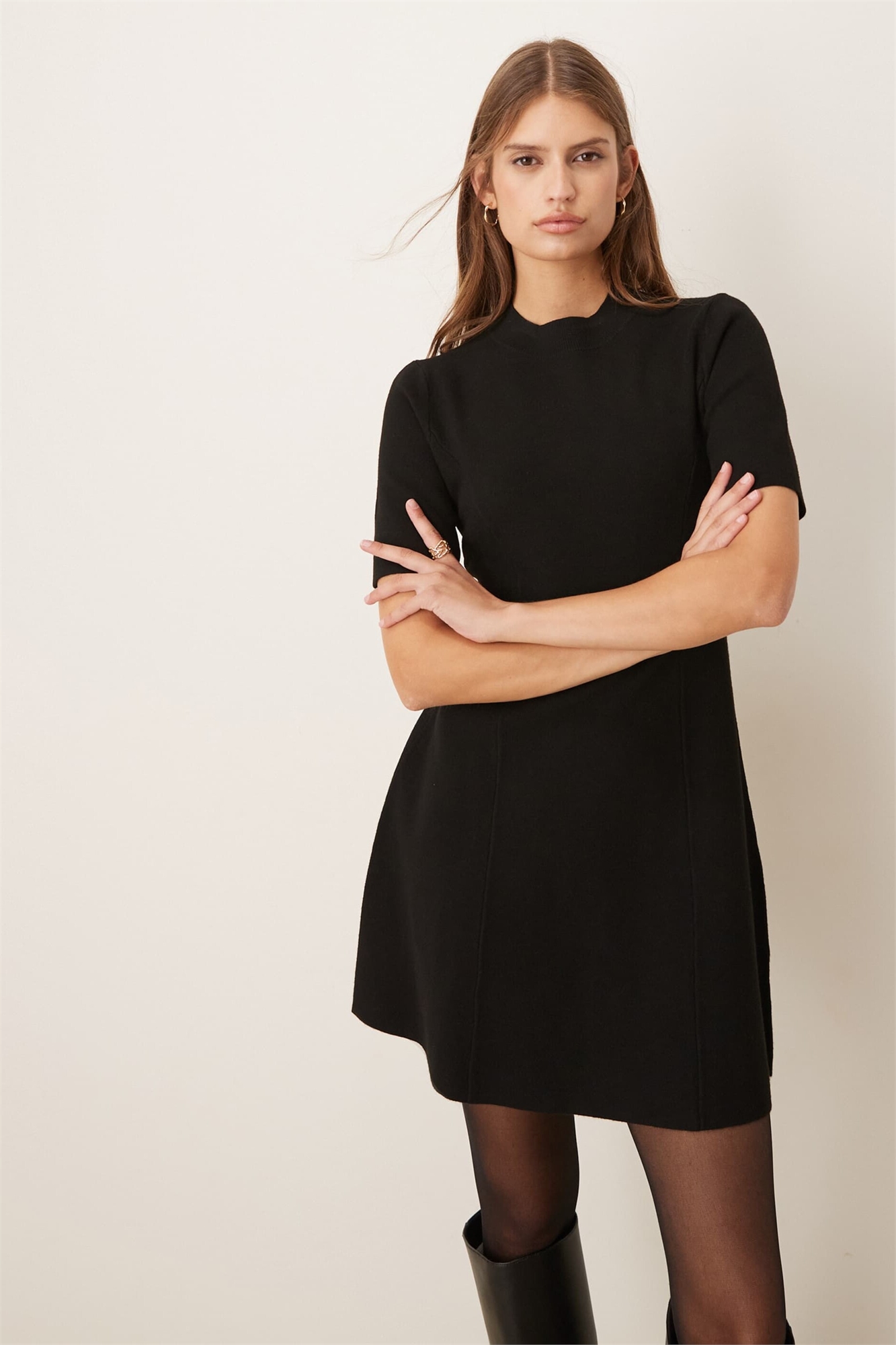 Мини-платье с короткими рукавами и расклешенным силуэтом