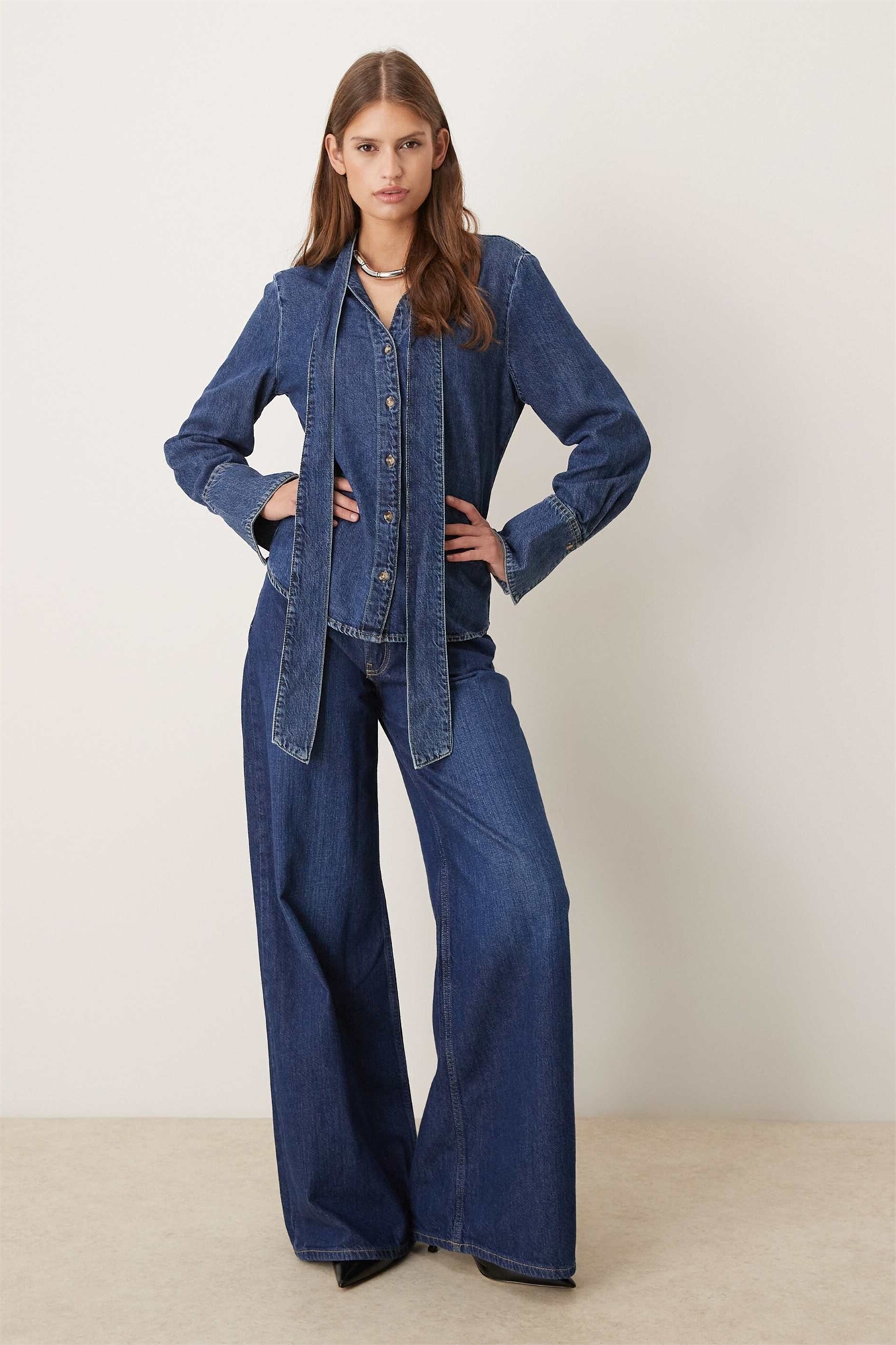 Рубашка из 100% хлопкового денима Msngo с завязками на шее