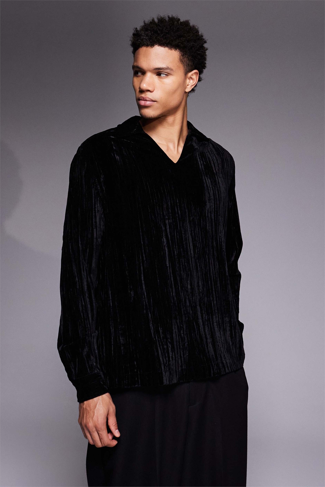 Рубашка свободного кроя из гофрированного бархата