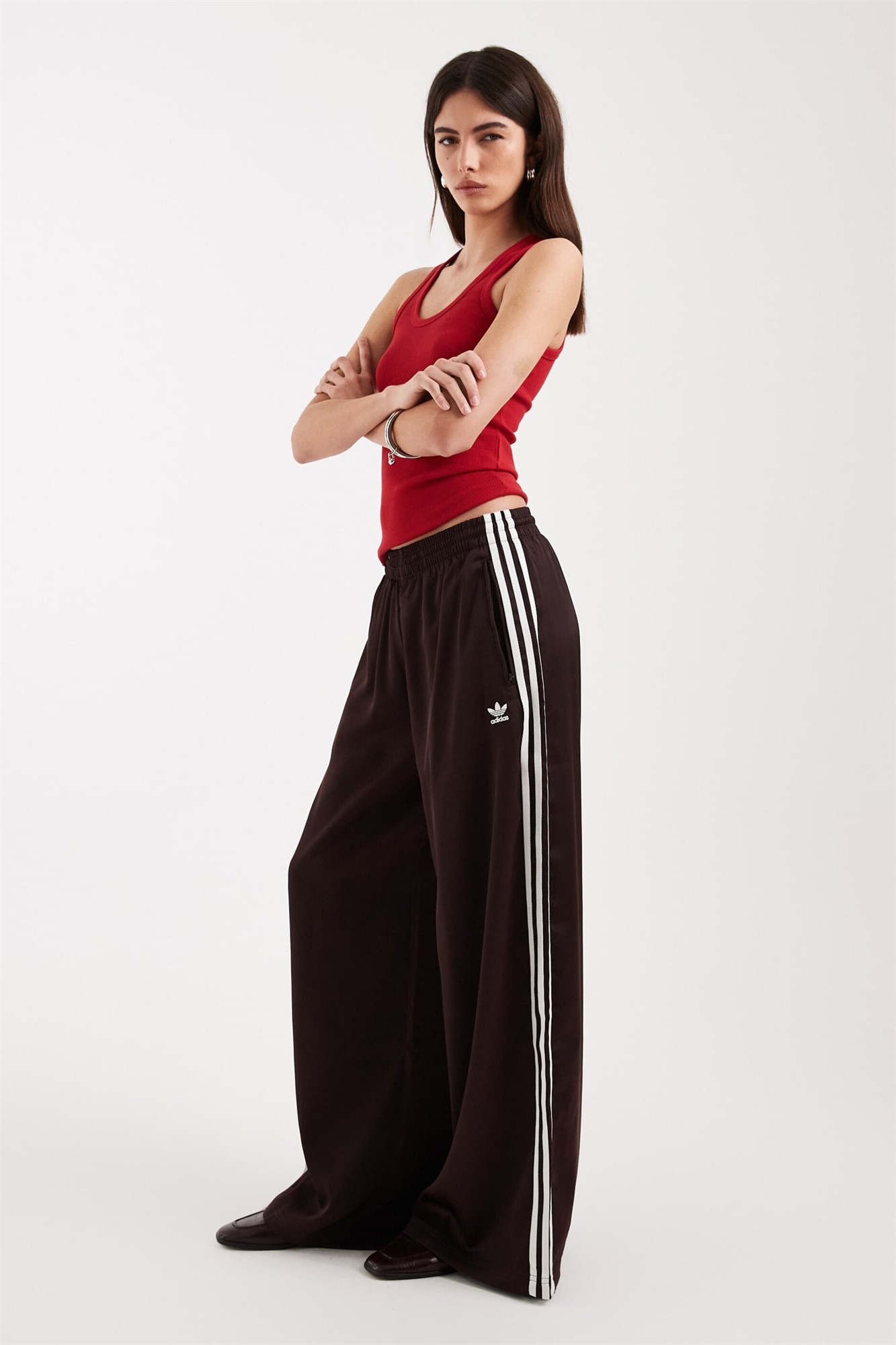 Атласные спортивные брюки с широкими штанинами