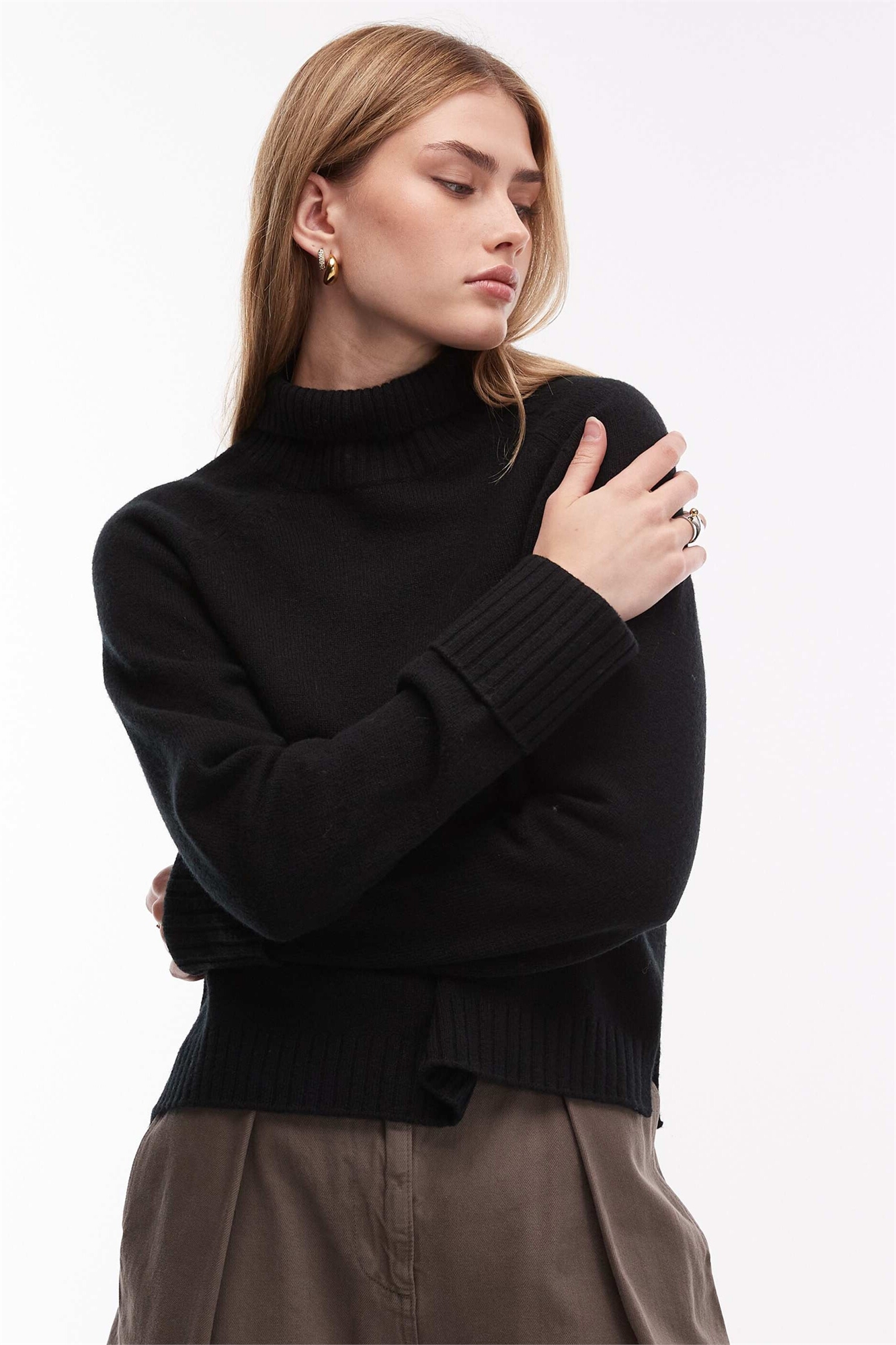 Шерстяной свитер с высоким воротником и широкими манжетами