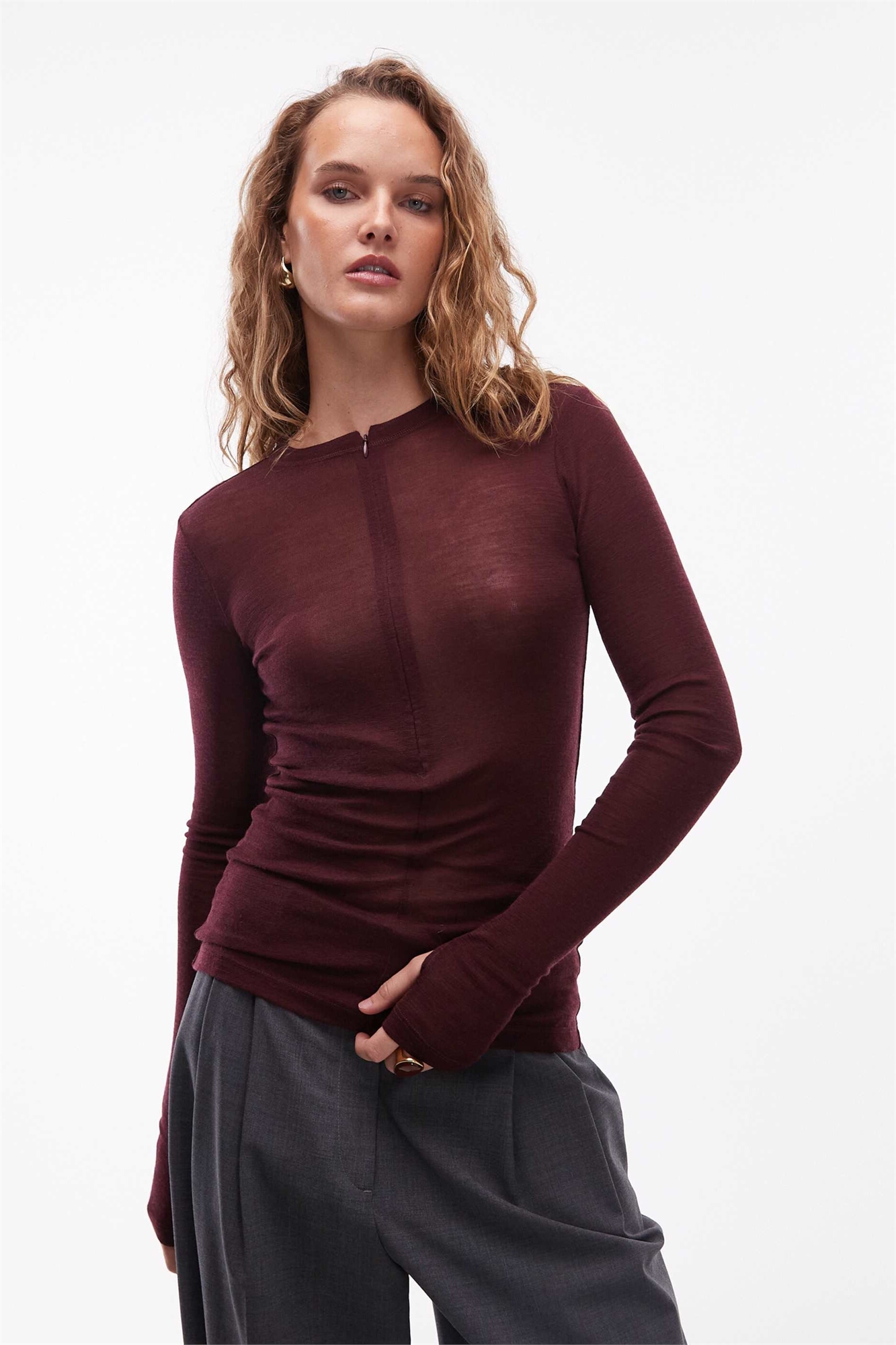 Полупрозрачный топ из мериносовой шерсти с полузастежкой-молнией